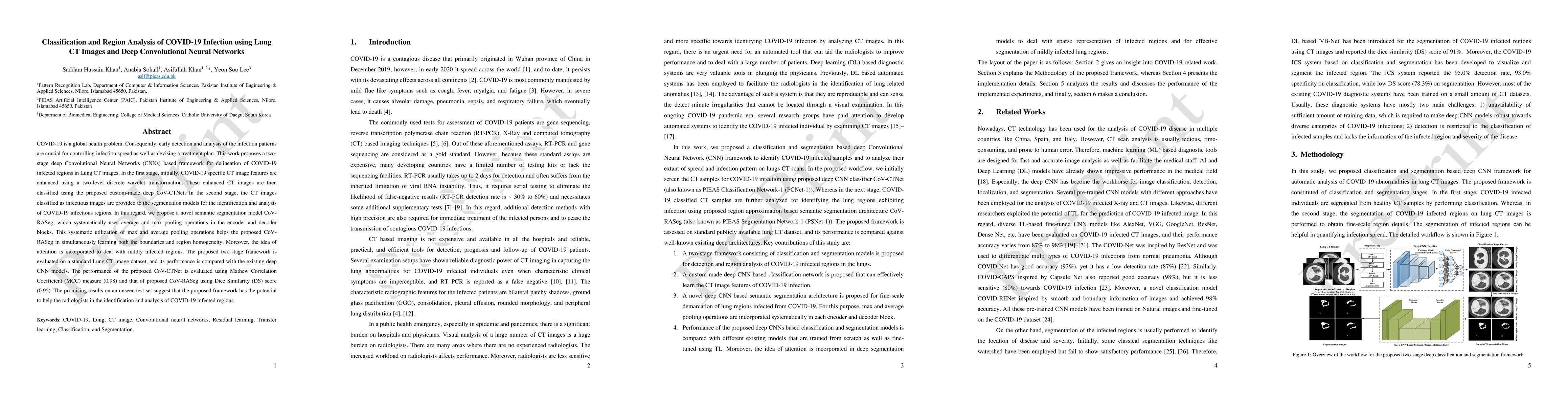 This paper proposes a two-stage deep CNN framework for detecting and analyzing COVID-19 infections in lung CT images using CoV-CTNet for classification and CoV-RASeg for segmentation. The framework shows high accuracy in detecting infected regions, potentially aiding radiologists.