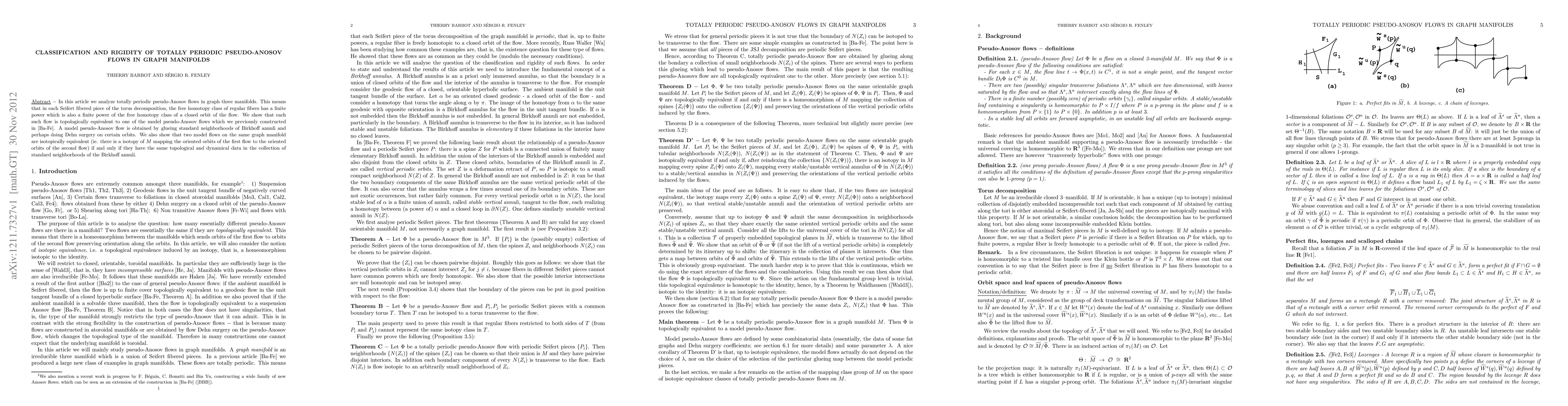 This paper classifies totally periodic pseudo-Anosov flows in graph three manifolds, demonstrating that they are topologically equivalent to previously constructed model flows. It also proves that two model flows are isotopically equivalent if and only if they share the same topological and dynamical data in the neighborhoods of Birkhoff annuli.