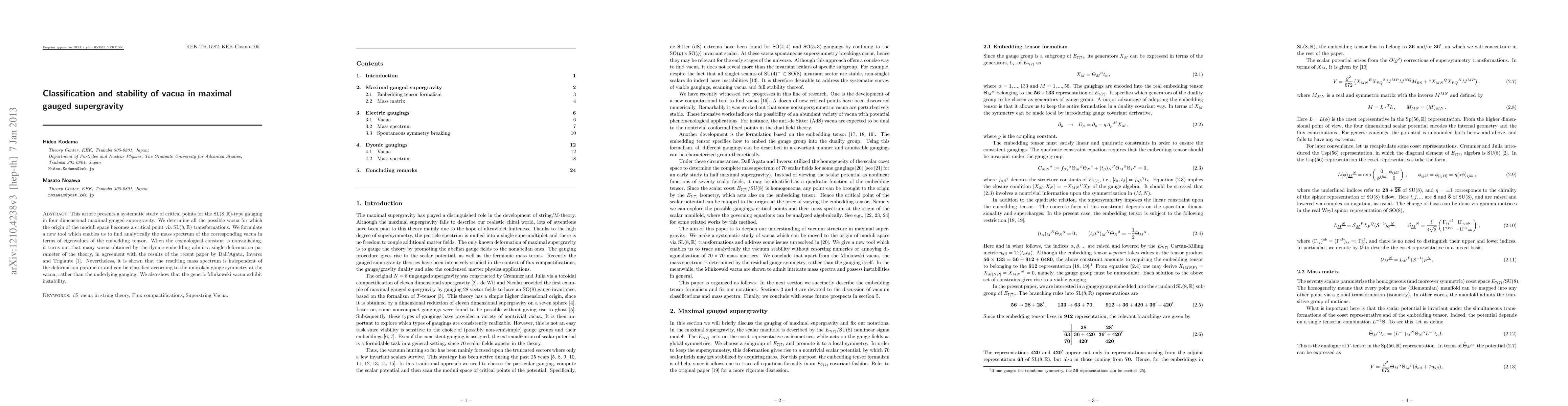 This paper systematically classifies vacua in four-dimensional maximal gauged supergravity under SL(8,R)-type gauging, revealing a mass spectrum independent of deformation parameters and tied to unbroken gauge symmetry. It also finds that generic Minkowski vacua are unstable.