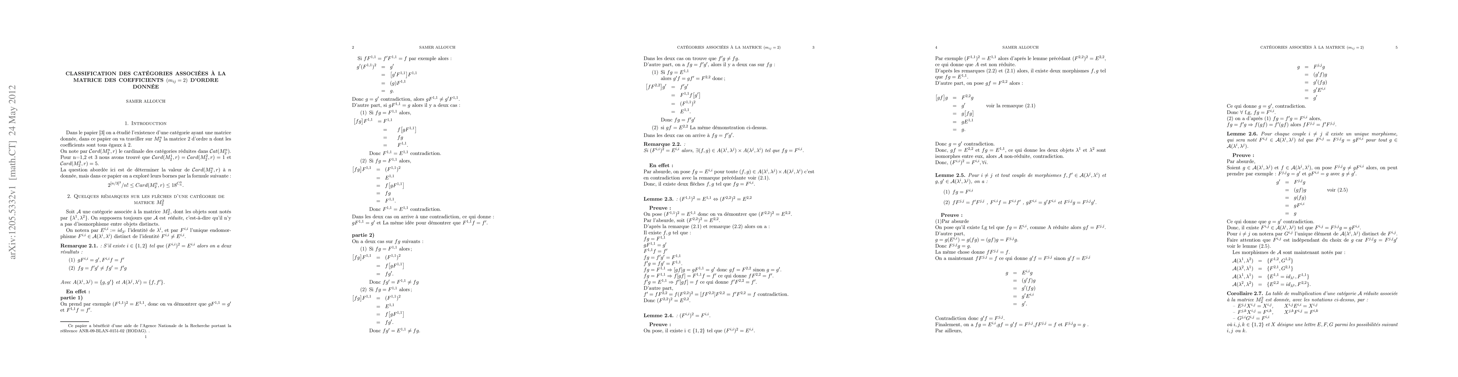 The paper presents a method to classify reduced categories associated with matrix 2 of given orders, along with bounds on the cardinal of the set of all such categories.