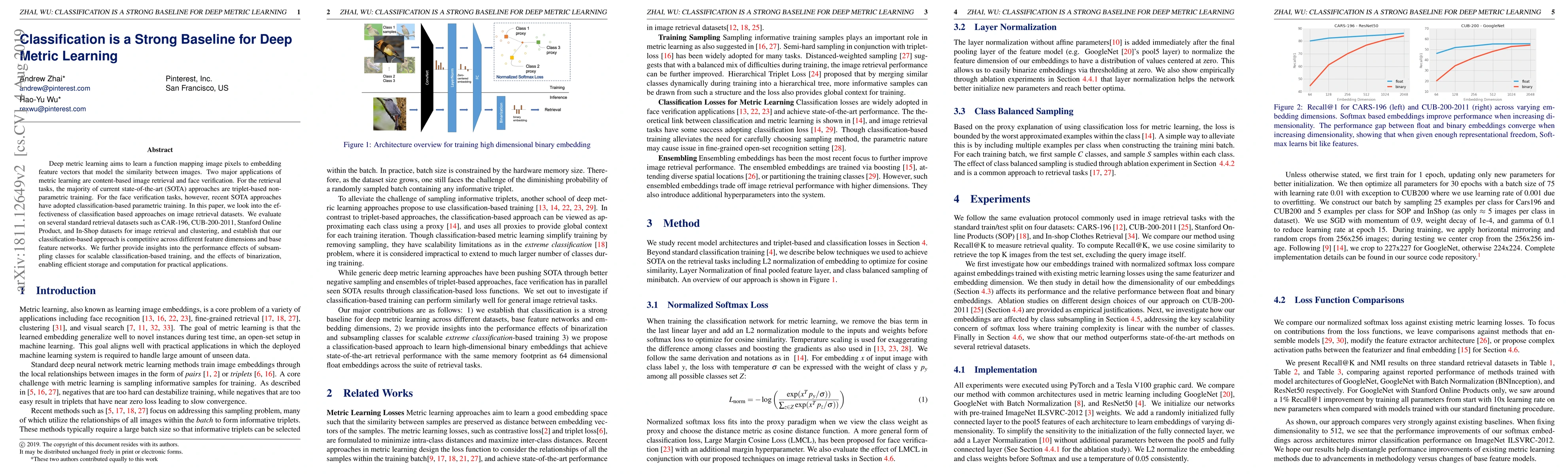 A new approach to deep metric learning uses classification-based training for image retrieval tasks, outperforming triplet-based methods in some cases. This method is scalable, efficient, and effective across different feature dimensions and datasets.