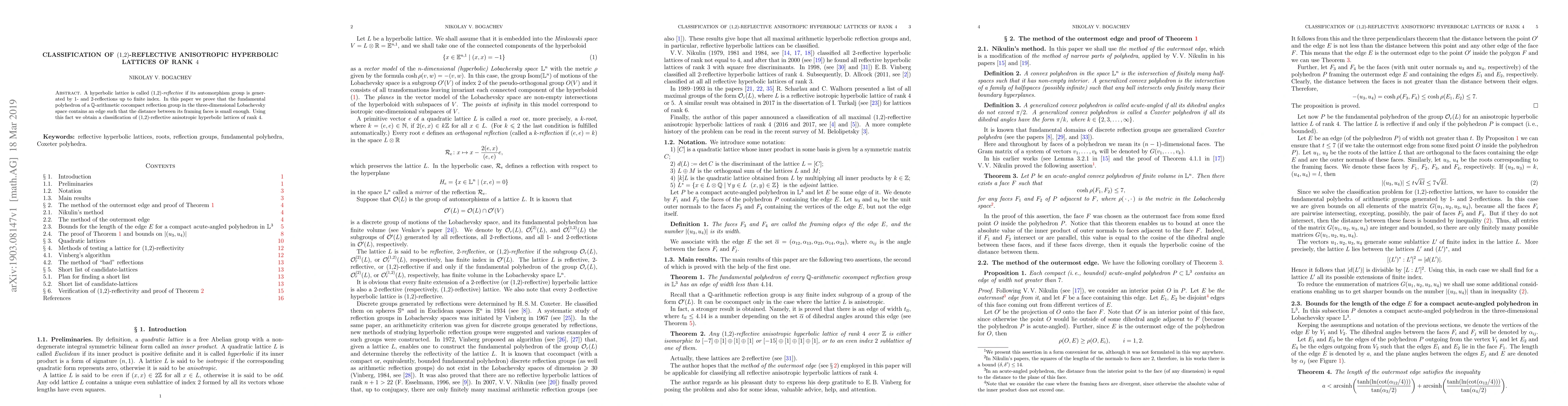 A hyperbolic lattice is called \textit{$(1{,}2)$-reflective} if its automorphism group is generated by $1$- and $2$-reflections up to finite index. In this paper we prove that the fundamental polyhedron of a $\mathbb{Q}$-arithmetic cocompact reflection group in the three-dimensional Lobachevsky space contains an edge such that the distance between its framing faces is small enough. Using this fact we obtain a classification of $(1{,}2)$-reflective anisotropic hyperbolic lattices of rank $4$.