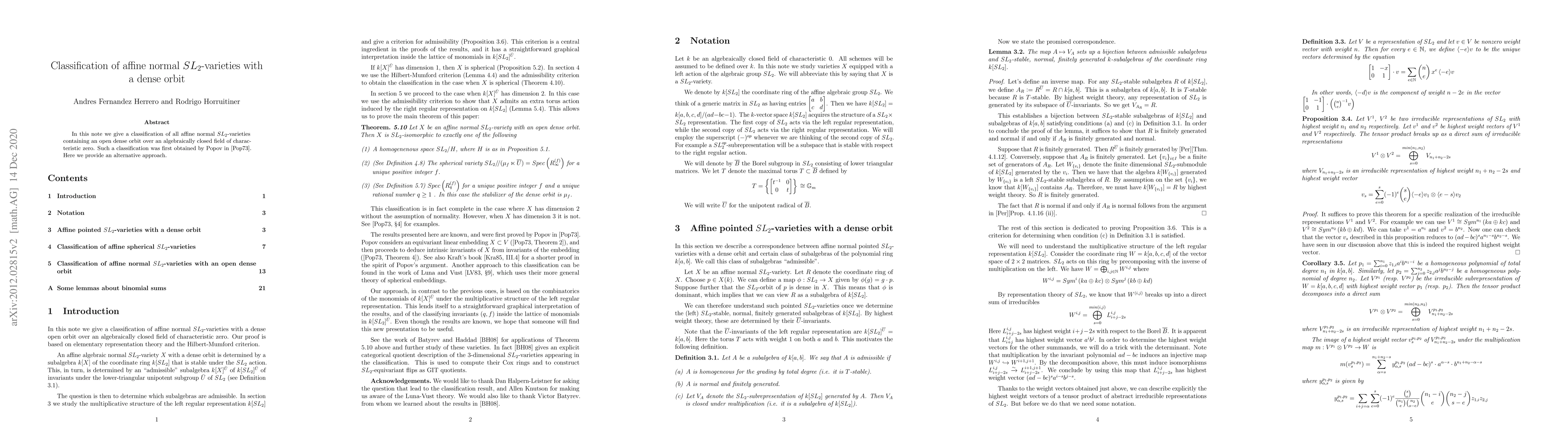 This research paper classifies affine normal SL_2-varieties with a dense orbit over an algebraically closed field of characteristic zero, providing an alternative approach to Popov's original classification.