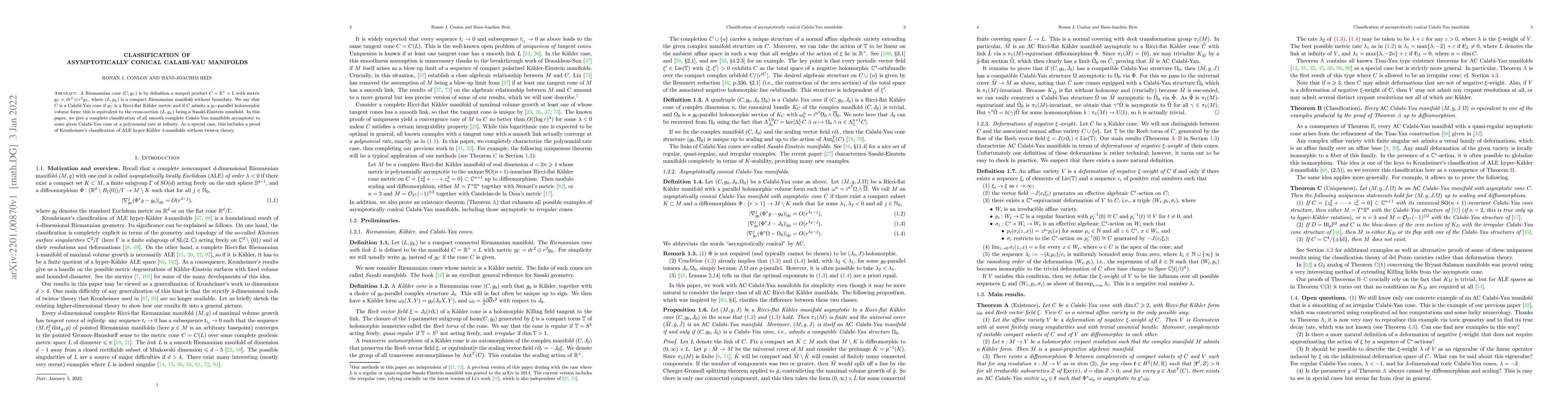 This paper classifies Calabi-Yau manifolds that asymptotically converge to a given cone at a polynomial rate, with implications for hyper-K"ahler geometry and the study of special cases like Kronheimer's classification of ALE hyper-K"ahler 4-manifolds.