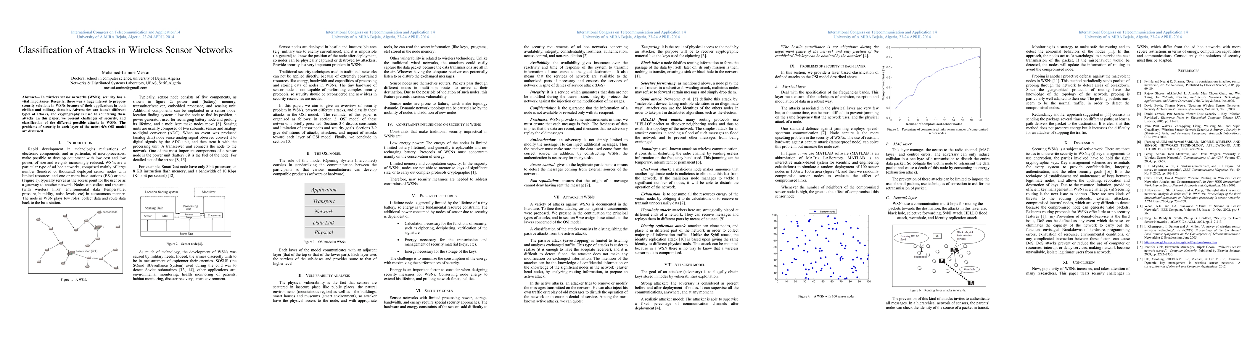 This paper explores the security challenges in wireless sensor networks (WSNs) and classifies various types of attacks, discussing the security issues at each layer of the OSI model to provide a comprehensive understanding of potential threats.
