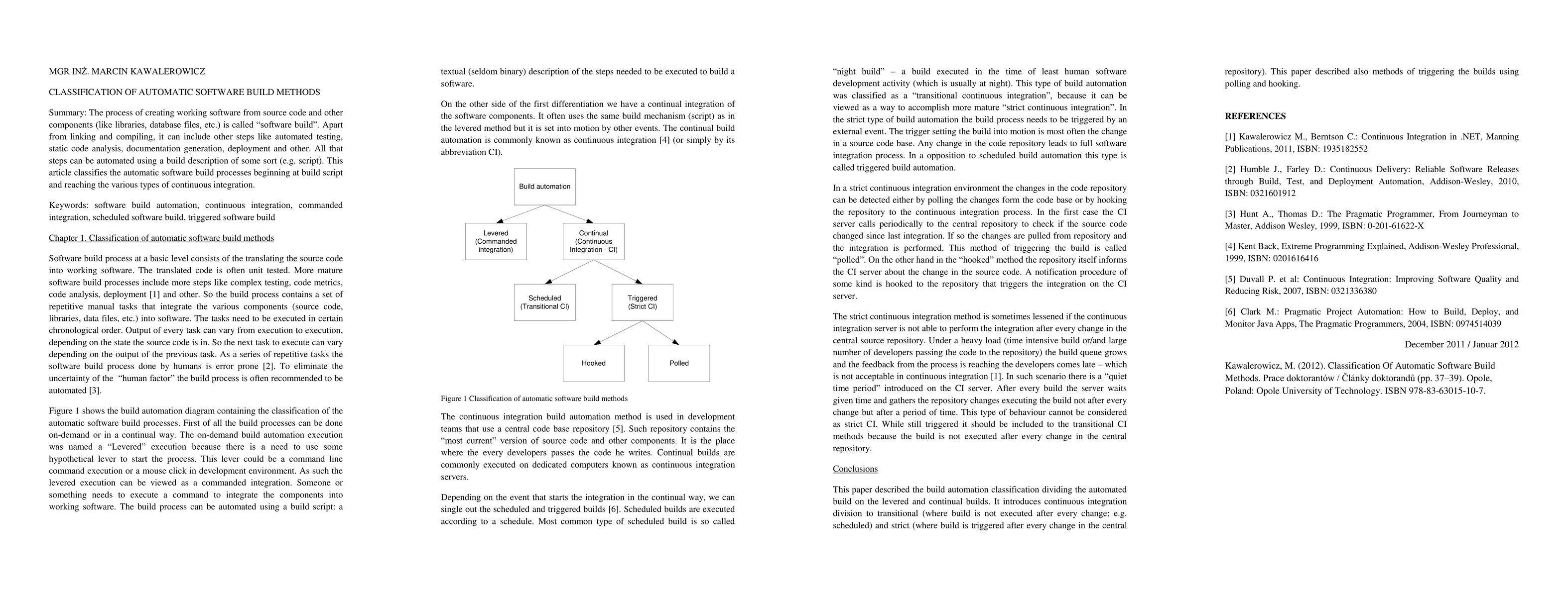 This paper classifies automatic software build processes into various stages, from creating a build script to continuous integration, providing insights for improving automation in software development.