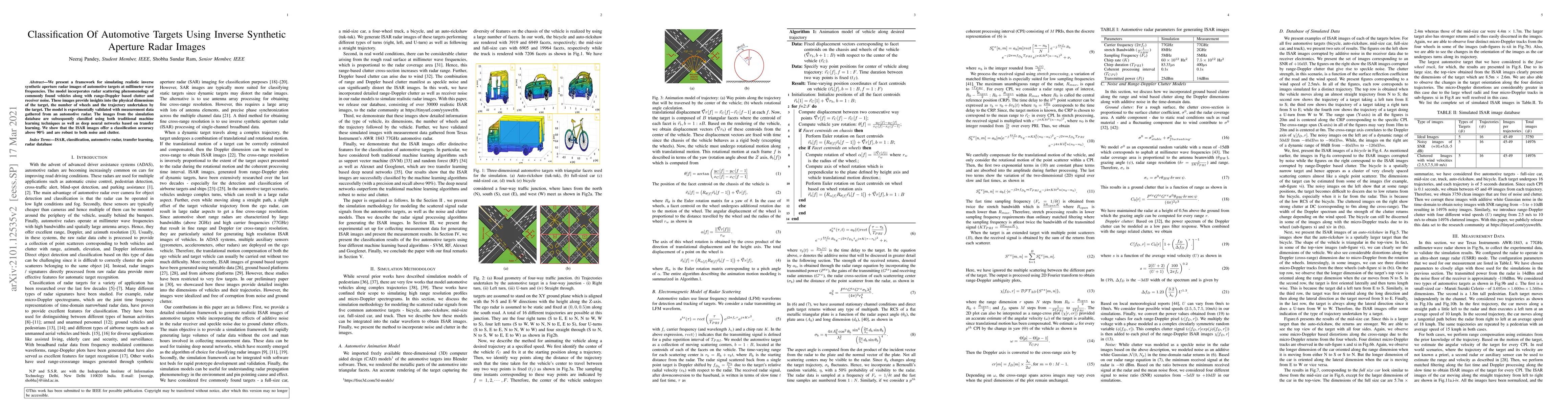 A framework for simulating realistic inverse synthetic aperture radar images of automotive targets at millimeter wave frequencies was developed.