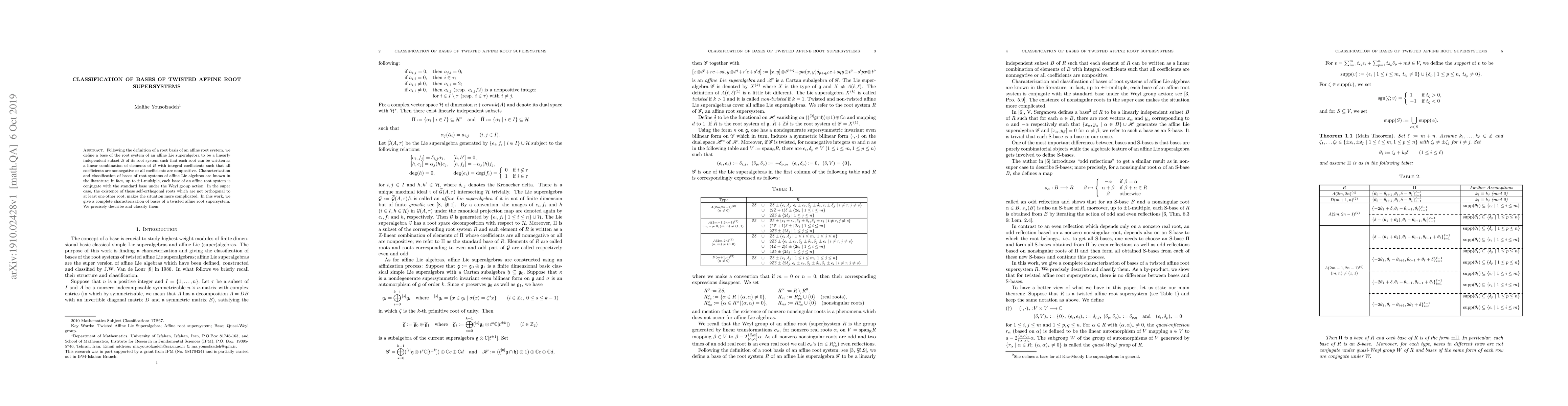 Following the definition of a root basis of an affine root system, we define a base of the root system of an affine Lie superalgebra to be a linearly independent subset $B$ of its root system such that each root can be written as a linear combination of elements of $B$ with integral coefficients such that all coefficients are nonnegative or all coefficients are nonpositive. Characterization and classification of bases of root systems of affine Lie algebras are known in the literature; in fact, up to $\pm 1$-multiple, each base of an affine root system is conjugate with the standard base under the Weyl group action. In the super case, the existence of those self-orthogonal roots which are not orthogonal to at least one other root, makes the situation more complicated. In this work, we give a complete characterization of bases of a twisted affine root supersystem. We precisely describe and classify them.