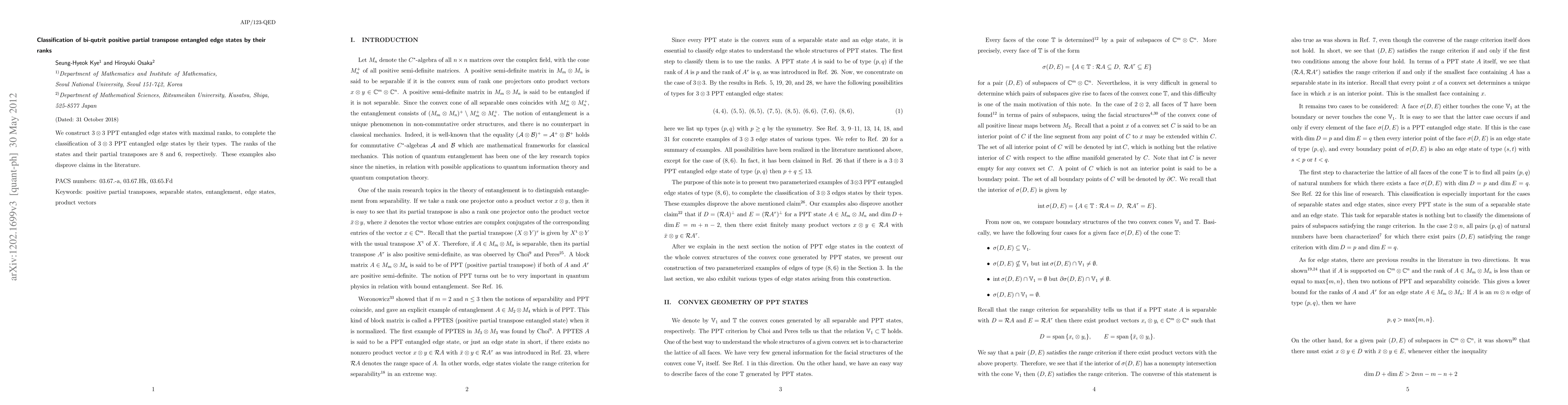 This paper classifies $3\otimes 3$ bi-qutrit positive partial transpose (PPT) entangled edge states by their ranks, showing that maximal rank states have ranks 8 and 6 for the original and partial transpose, respectively, thus disproving previous claims in the literature.