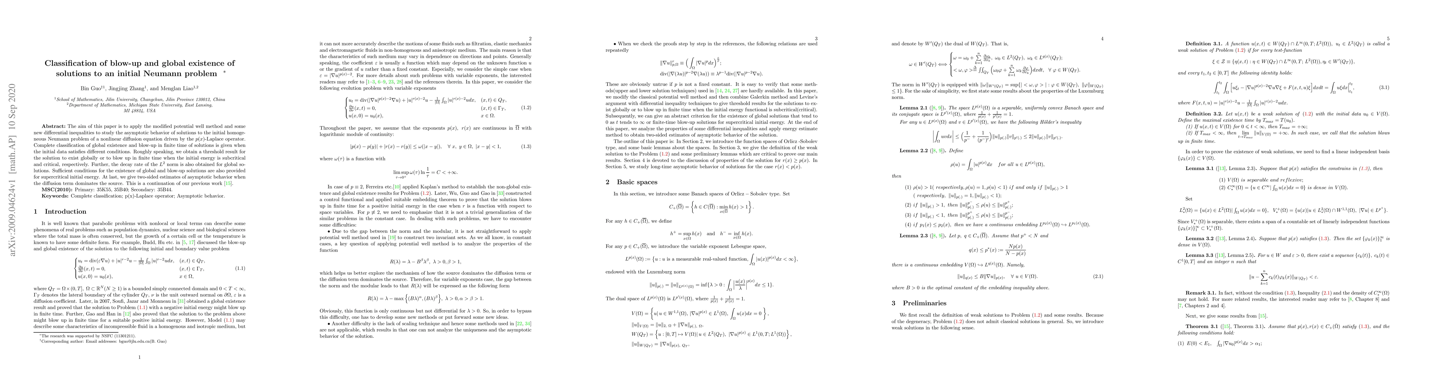 This paper classifies the global existence and blow-up of solutions for a nonlinear diffusion equation with a $p(x)$-Laplace operator and initial Neumann boundary conditions. It utilizes the modified potential well method and new differential inequalities to derive threshold results based on the initial energy, providing decay rates for global solutions and conditions for blow-up under different initial data scenarios.