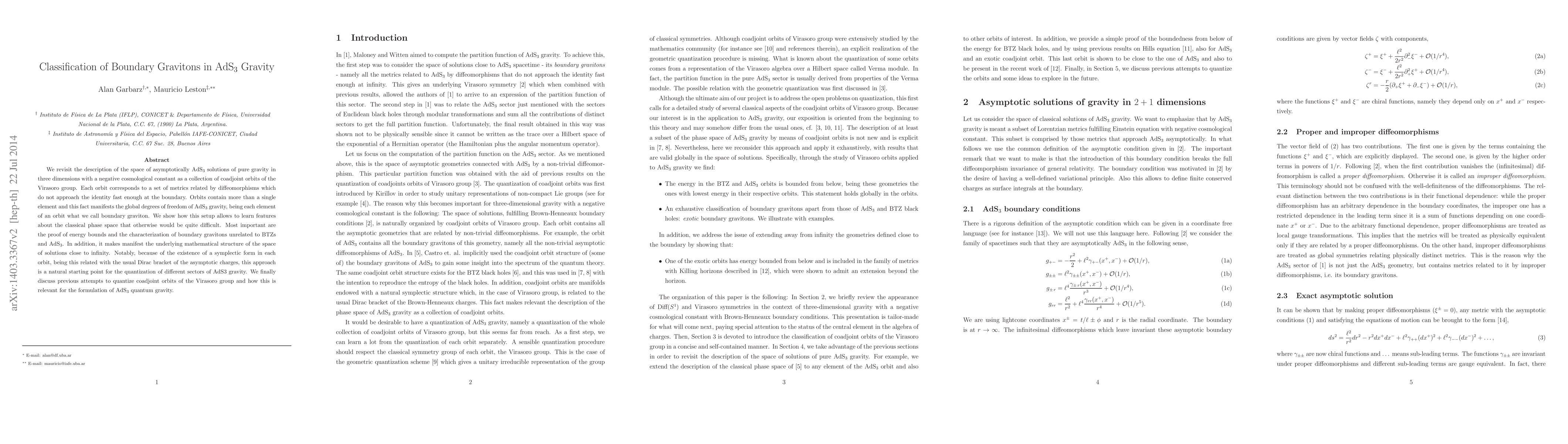 This paper classifies boundary gravitons in AdS$_3$ gravity by interpreting asymptotically AdS$_3$ solutions as coadjoint orbits of the Virasoro group, revealing global degrees of freedom and providing a natural framework for quantization. It also establishes energy bounds and characterizes boundary gravitons distinct from BTZ black holes.