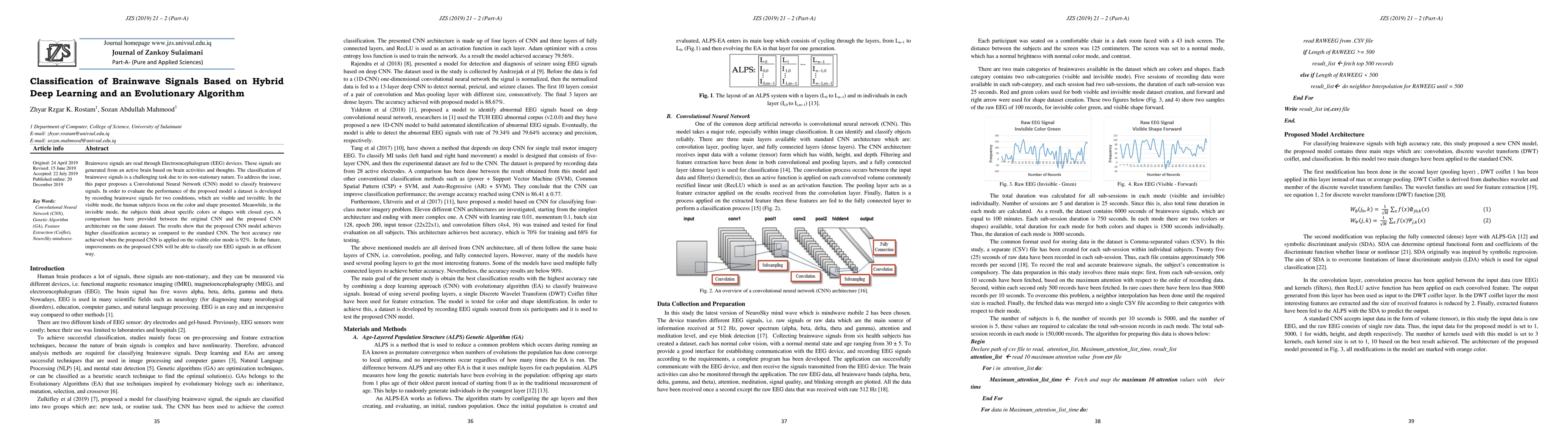 A new CNN model with a hybrid approach using deep learning and evolutionary algorithms improves brainwave signal classification accuracy to 92% in visible mode.