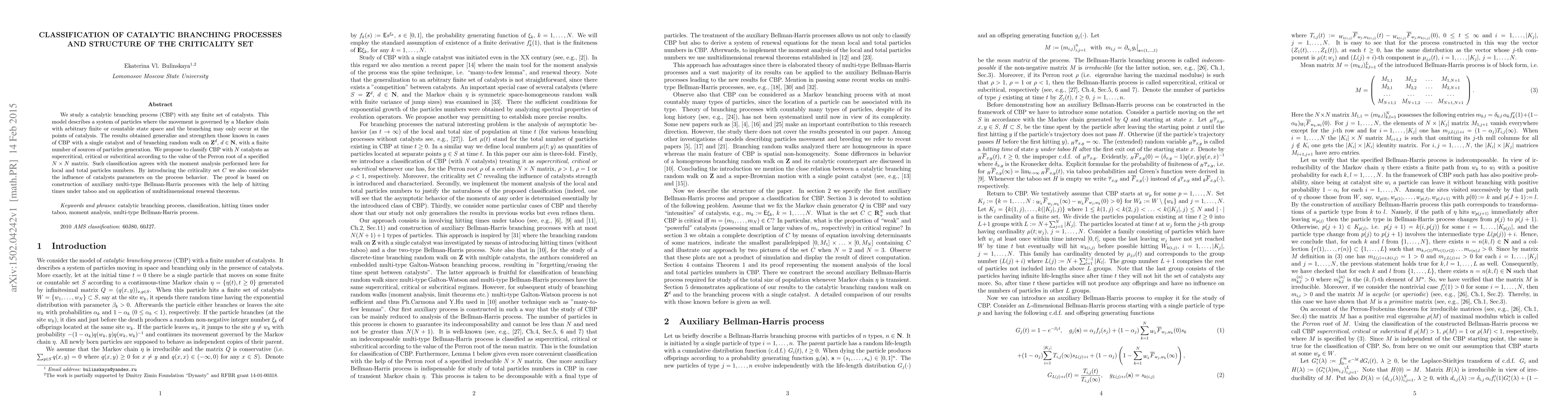 This paper classifies catalytic branching processes (CBP) with multiple catalysts into supercritical, critical, or subcritical categories based on the Perron root of an associated matrix. It generalizes previous results for single-catalyst CBP and branching random walks, introducing a criticality set to analyze the influence of catalyst parameters on process behavior.