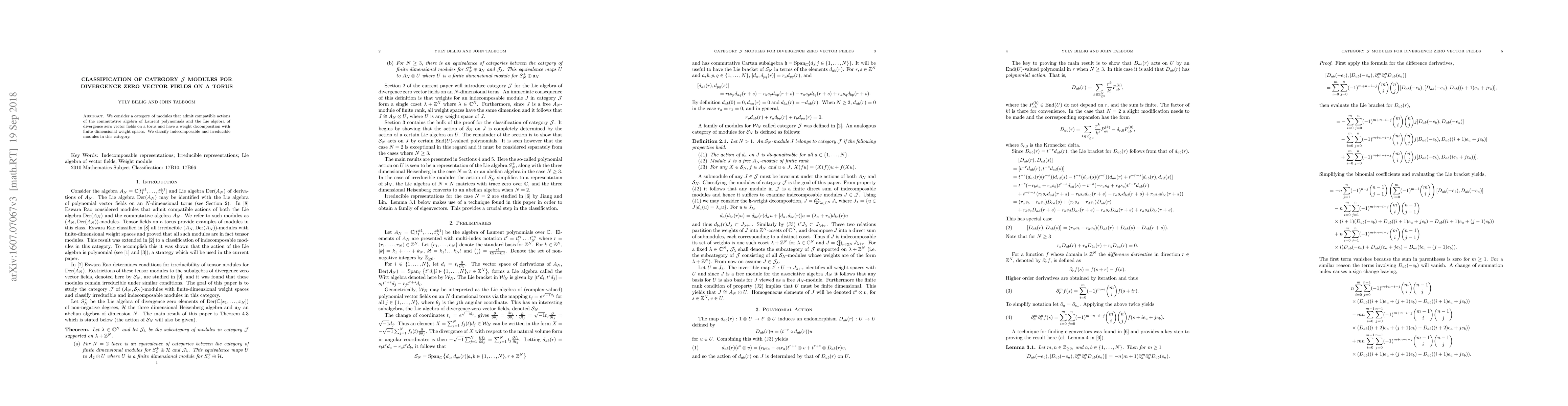 This paper classifies indecomposable and irreducible modules within a specific category that supports actions from Laurent polynomials and divergence zero vector fields on a torus, featuring weight decompositions with finite-dimensional weight spaces. The focus is on understanding the structure and properties of these modules.