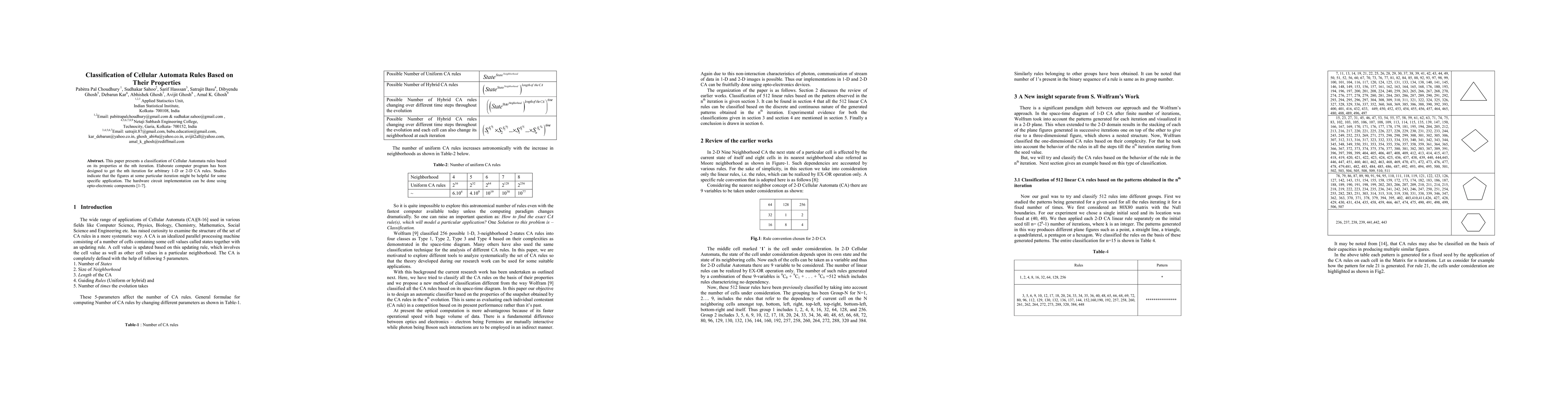 This paper presents a classification of Cellular Automata rules based on its properties at the nth iteration. Elaborate computer program has been designed to get the nth iteration for arbitrary 1-D or 2-D CA rules. Studies indicate that the figures at some particular iteration might be helpful for some specific application. The hardware circuit implementation can be done using opto-electronic components [1-7].