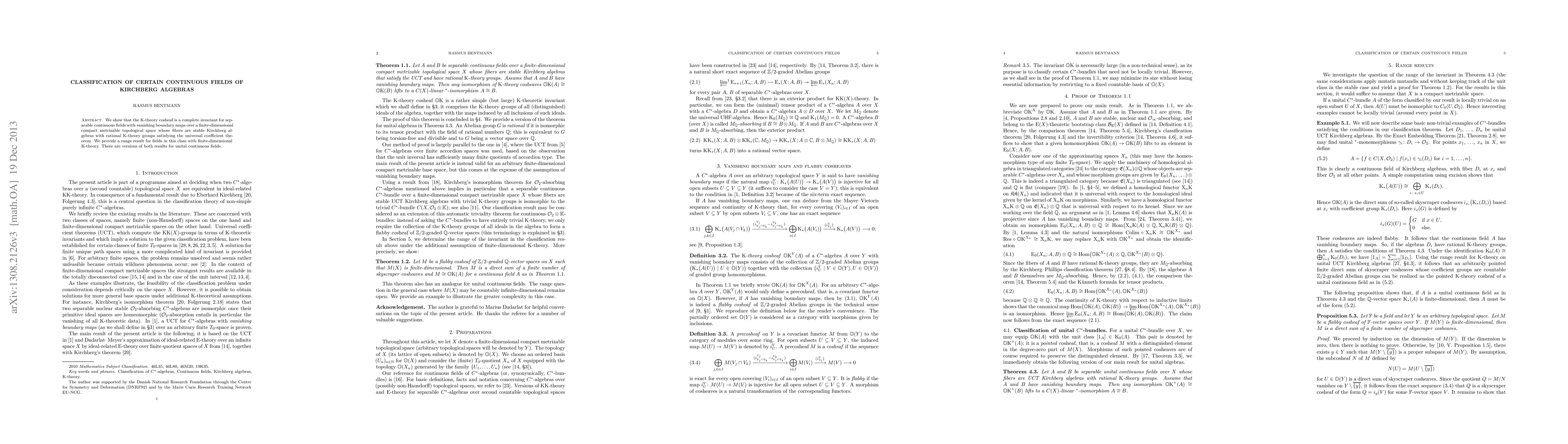 We show that the K-theory cosheaf is a complete invariant for separable continuous fields with vanishing boundary maps over a finite-dimensional compact metrizable topological space whose fibers are stable Kirchberg algebras with rational K-theory groups satisfying the universal coefficient theorem. We provide a range result for fields in this class with finite-dimensional K-theory. There are versions of both results for unital continuous fields.