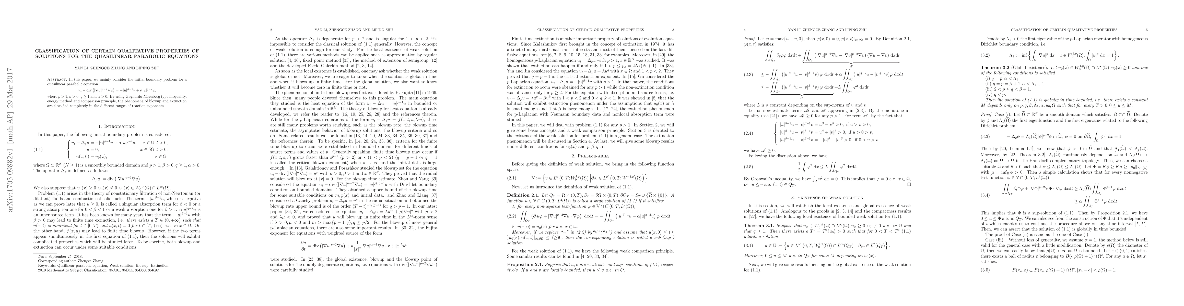 This paper uses mathematical techniques like Gagliardo-Nirenberg inequality, energy method, and comparison principle to classify the behavior of solutions for a specific quasilinear parabolic equation. It determines when solutions will blow up or become extinct based on reaction exponents.