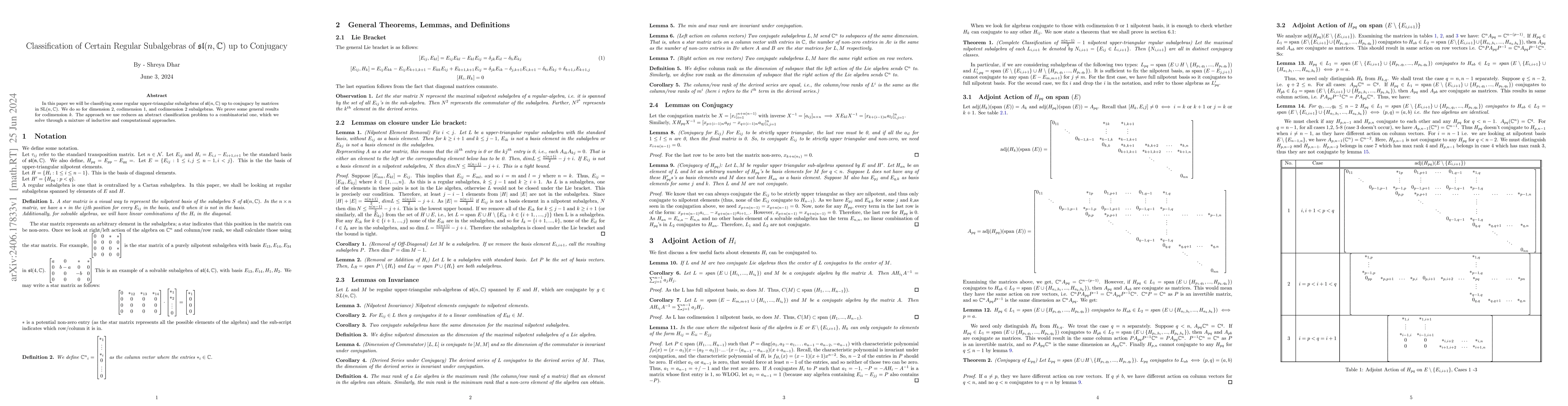In this paper we will be classifying some regular upper-triangular subalgebras of $\mathfrak{sl}(n, \mathbb C)$ up to conjugacy by matrices in $SL(n, \mathbb C)$. We do so for dimension 2, codimension 1, and codimension 2 subalgebras. We prove some general results for codimension $k$. The approach we use reduces an abstract classification problem to a combinatorial one, which we solve through a mixture of inductive and computational approaches.