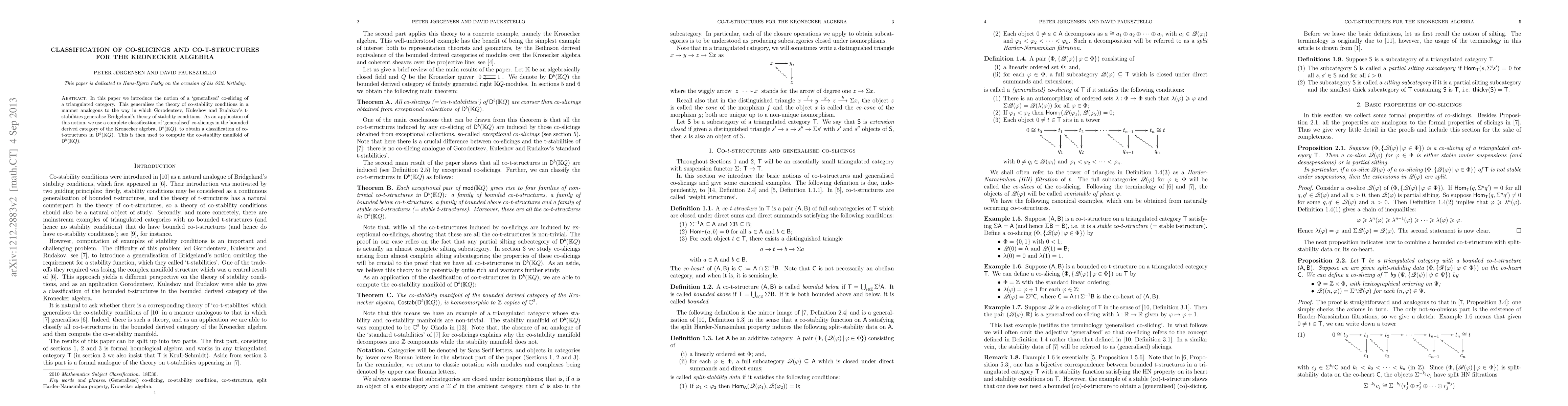 In this paper we introduce the notion of a 'generalised' co-slicing of a triangulated category. This generalises the theory of co-stability conditions in a manner analogous to the way in which Gorodentsev, Kuleshov and Rudakov's t-stabilities generalise Bridgeland's theory of stability conditions. As an application of this notion, we use a complete classification of 'generalised' co-slicings in the bounded derived category of the Kronecker algebra, $D^b(KQ)$, to obtain a classification of co-t-structures in $D^b(Q)$. This is then used to compute the co-stability manifold of $D^b(KQ)$.
