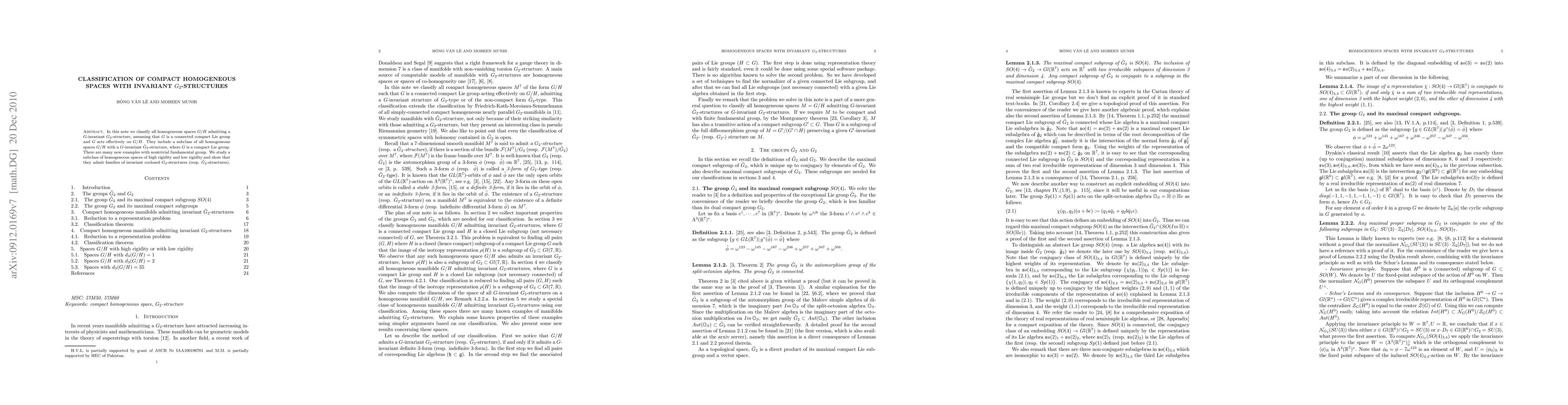 In this note we classify all homogeneous spaces $G/H$ admitting a $G$-invariant $G_2$-structure, assuming that $G$ is a compact Lie group and $G$ acts effectively on $G/H$. They include a subclass of all homogeneous spaces $G/H$ with a $G$-invariant $\tilde G_2$-structure, where $G$ is a compact Lie group. There are many new examples with nontrivial fundamental group. We study a subclass of homogeneous spaces of high rigidity and low rigidity and show that they admit families of invariant coclosed $G_2$-structures (resp. $\tilde G_2$-structures).