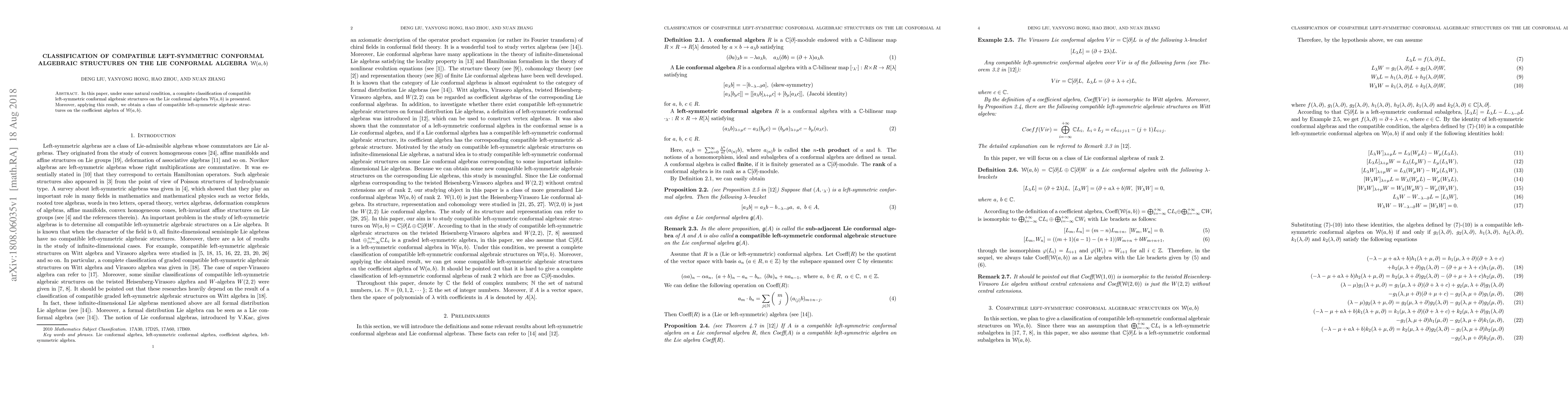 This paper provides a complete classification of compatible left-symmetric conformal algebraic structures on the Lie conformal algebra $\mathcal{W}(a,b)$, under certain conditions, and derives a class of compatible left-symmetric algebraic structures on its coefficient algebra.