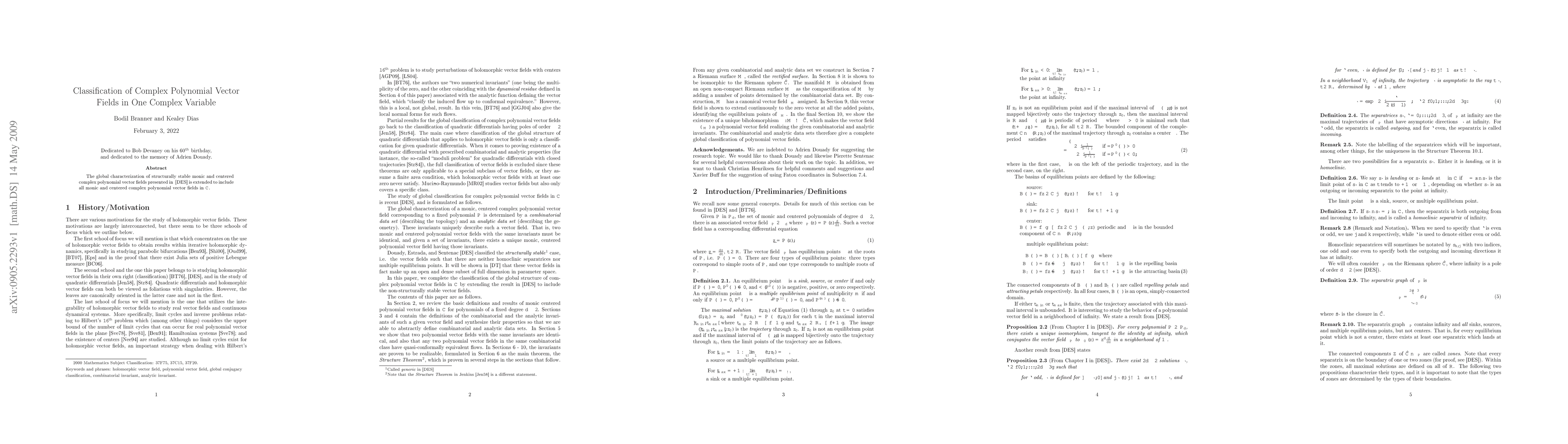 Summary: This paper classifies the global structure of monic and centered complex polynomial vector fields in one variable, providing a comprehensive understanding of their behavior. The study focuses on the topological and dynamical properties of these vector fields.