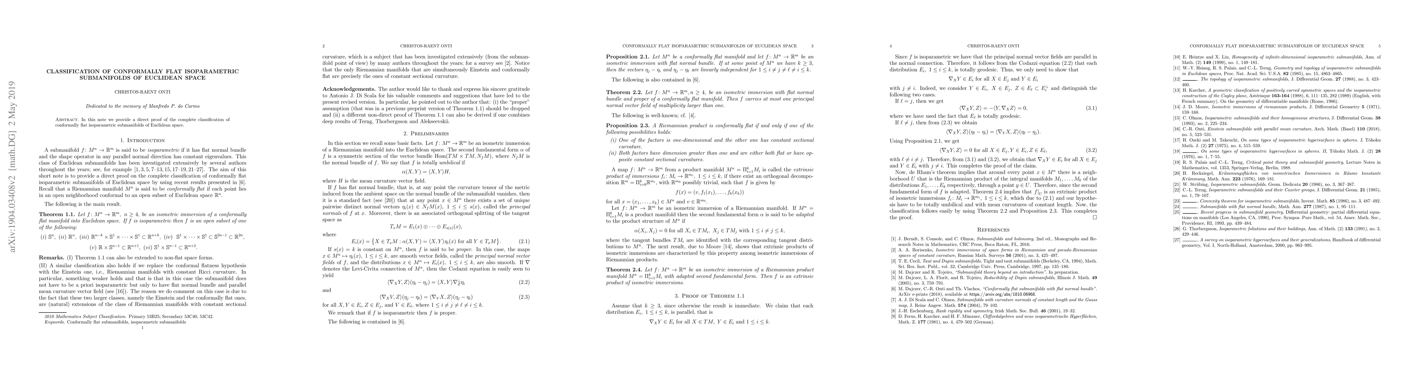 Summary: This paper presents a direct proof for the complete classification of conformally flat isoparametric submanifolds within Euclidean space, offering new insights into their geometric properties.