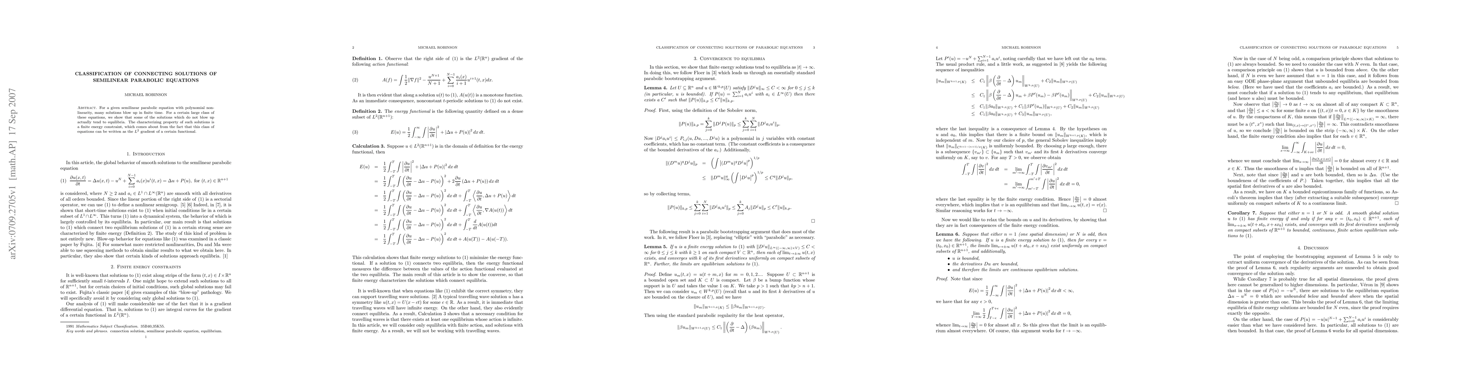 Research finds that some solutions to a specific class of semilinear parabolic equations do not blow up in finite time but instead tend towards equilibria, characterized by a finite energy constraint.