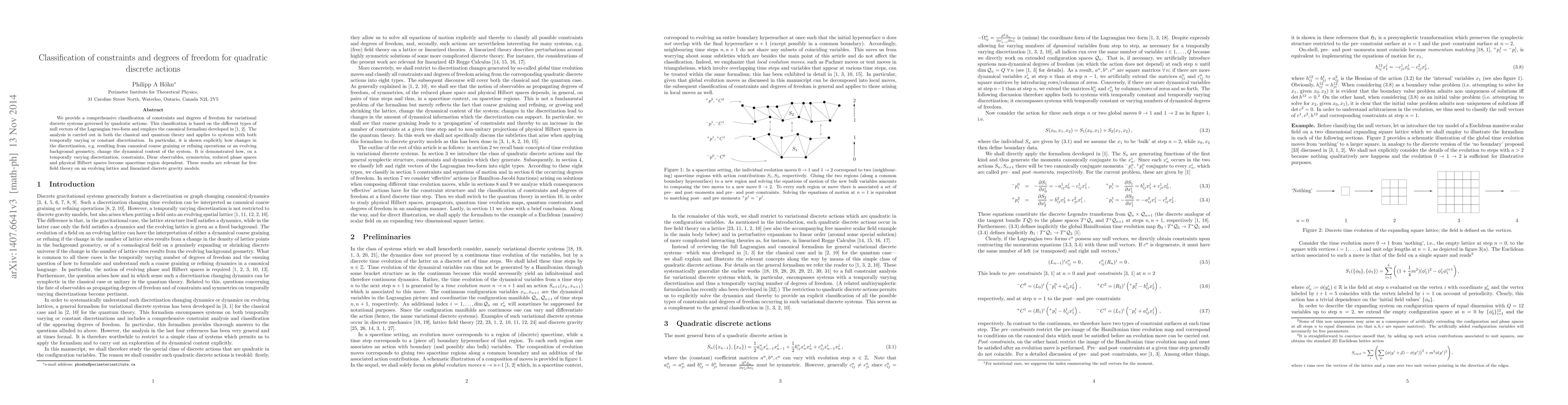 This paper classifies constraints and degrees of freedom for variational discrete systems with quadratic actions, using null vectors of the Lagrangian two-form and canonical formalism. The analysis reveals how discretization changes affect dynamical content, showing region-dependent constraints and observables in spacetime.