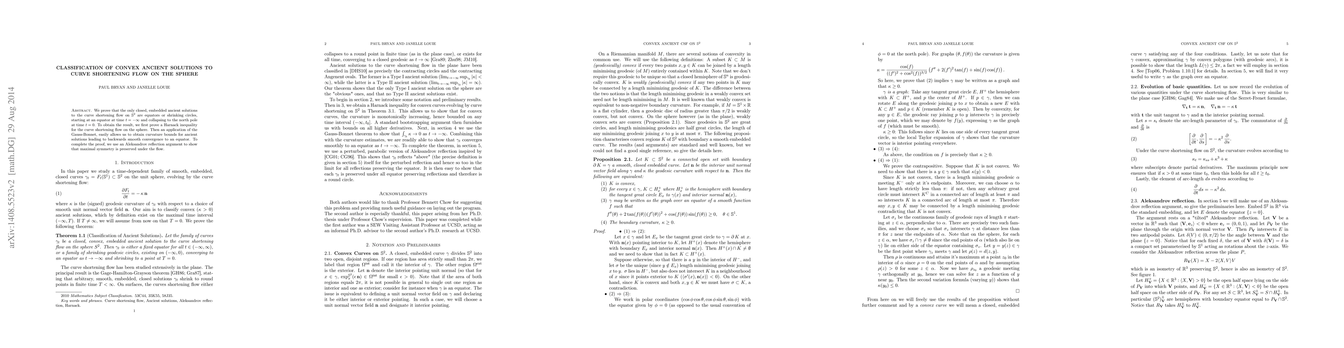 This paper classifies convex ancient solutions to curve shortening flow on the sphere, proving that the only closed, embedded solutions are equators or shrinking circles, and utilizes a Harnack inequality, Gauss-Bonnet theorem, and Aleksandrov reflection argument to establish these results.
