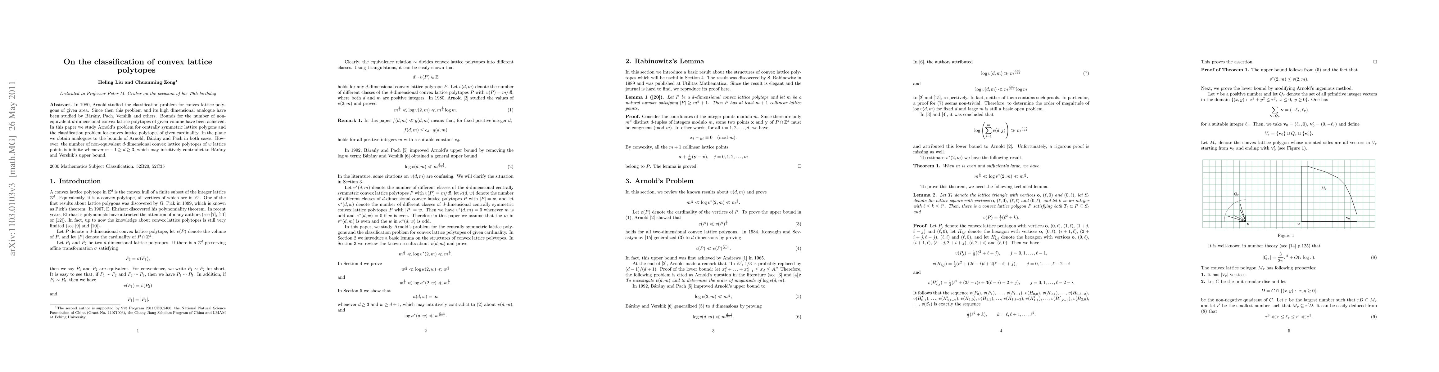 This paper studies the classification of convex lattice polytopes based on volume or cardinality, focusing on key findings and implications.