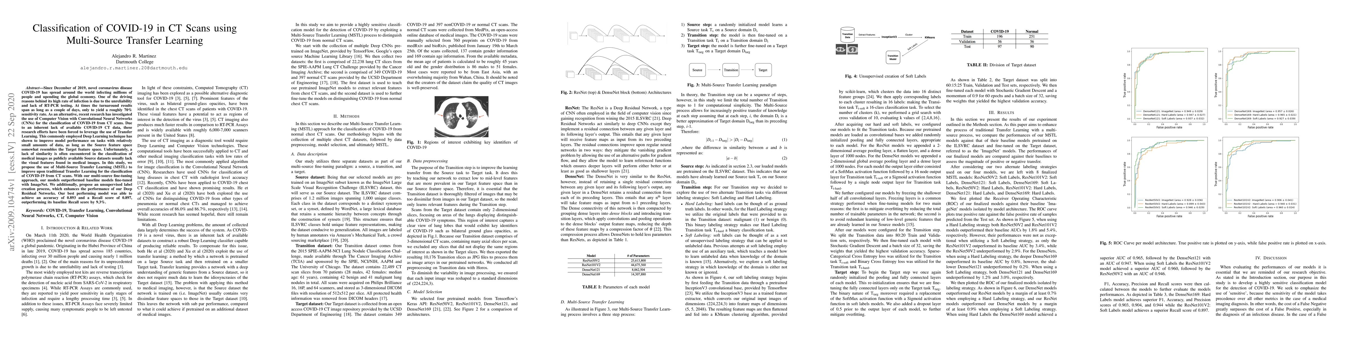 Since December of 2019, novel coronavirus disease COVID-19 has spread around the world infecting millions of people and upending the global economy. One of the driving reasons behind its high rate of infection is due to the unreliability and lack of RT-PCR testing. At times the turnaround results span as long as a couple of days, only to yield a roughly 70% sensitivity rate. As an alternative, recent research has investigated the use of Computer Vision with Convolutional Neural Networks (CNNs) for the classification of COVID-19 from CT scans. Due to an inherent lack of available COVID-19 CT data, these research efforts have been forced to leverage the use of Transfer Learning. This commonly employed Deep Learning technique has shown to improve model performance on tasks with relatively small amounts of data, as long as the Source feature space somewhat resembles the Target feature space. Unfortunately, a lack of similarity is often encountered in the classification of medical images as publicly available Source datasets usually lack the visual features found in medical images. In this study, we propose the use of Multi-Source Transfer Learning (MSTL) to improve upon traditional Transfer Learning for the classification of COVID-19 from CT scans. With our multi-source fine-tuning approach, our models outperformed baseline models fine-tuned with ImageNet. We additionally, propose an unsupervised label creation process, which enhances the performance of our Deep Residual Networks. Our best performing model was able to achieve an accuracy of 0.893 and a Recall score of 0.897, outperforming its baseline Recall score by 9.3%.
