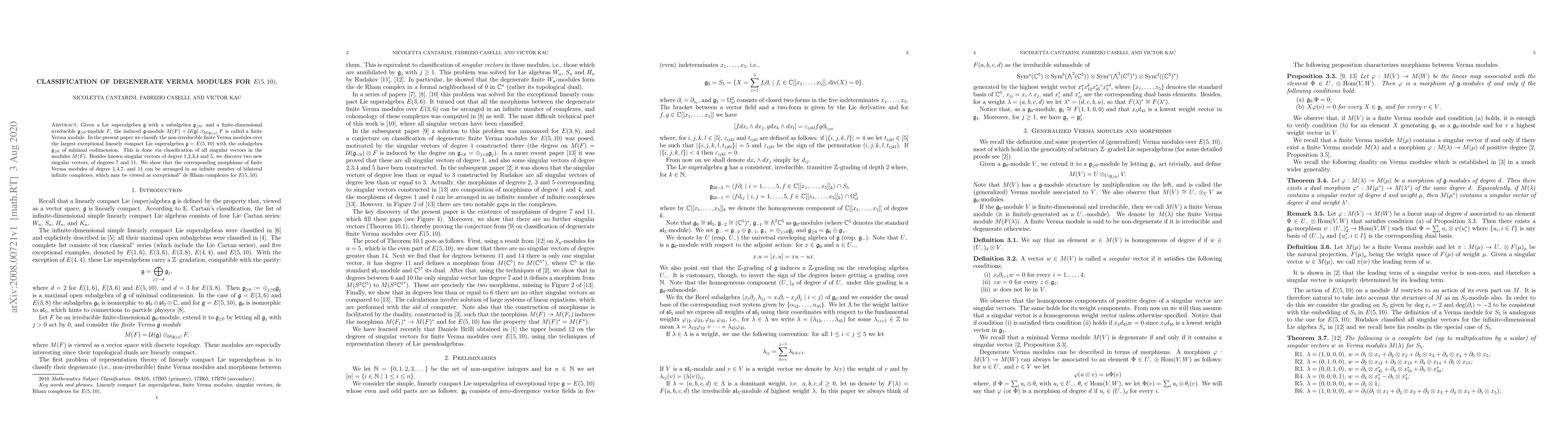 This paper classifies non-irreducible finite Verma modules for the exceptional Lie superalgebra $E(5,10)$, identifying new singular vectors of degrees 7 and 11, and demonstrating the formation of infinite bilateral complexes, termed 'exceptional' de Rham complexes.