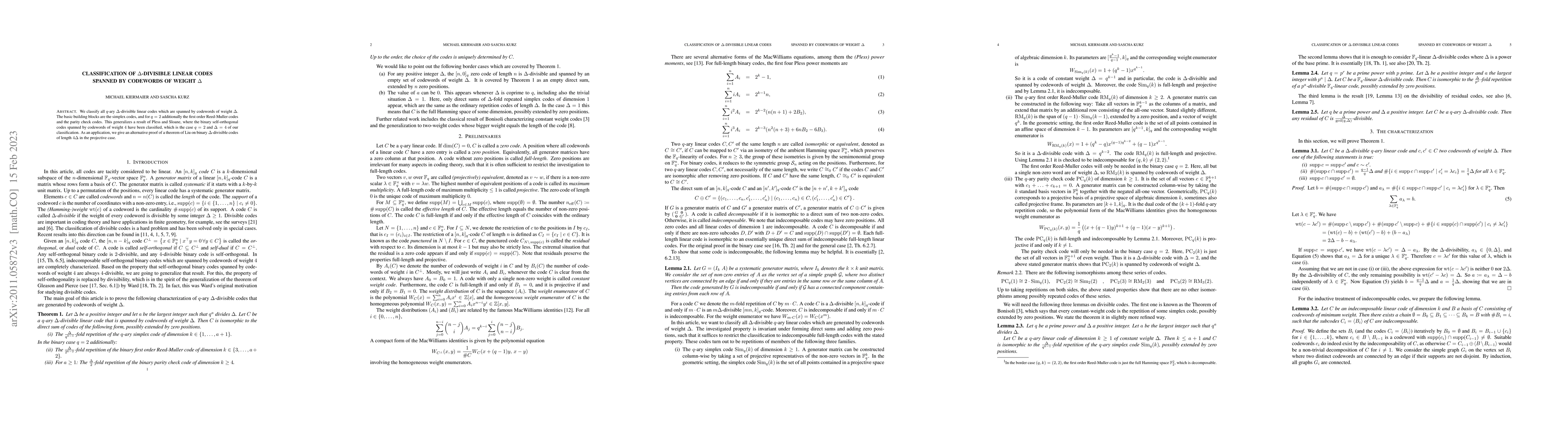 This paper classifies $q$-ary $\Delta$-divisible linear codes spanned by codewords of weight $\Delta$, identifying simplex codes, first order Reed-Muller codes, and parity check codes as basic building blocks. It generalizes Pless and Sloane's classification of binary self-orthogonal codes of weight 4.