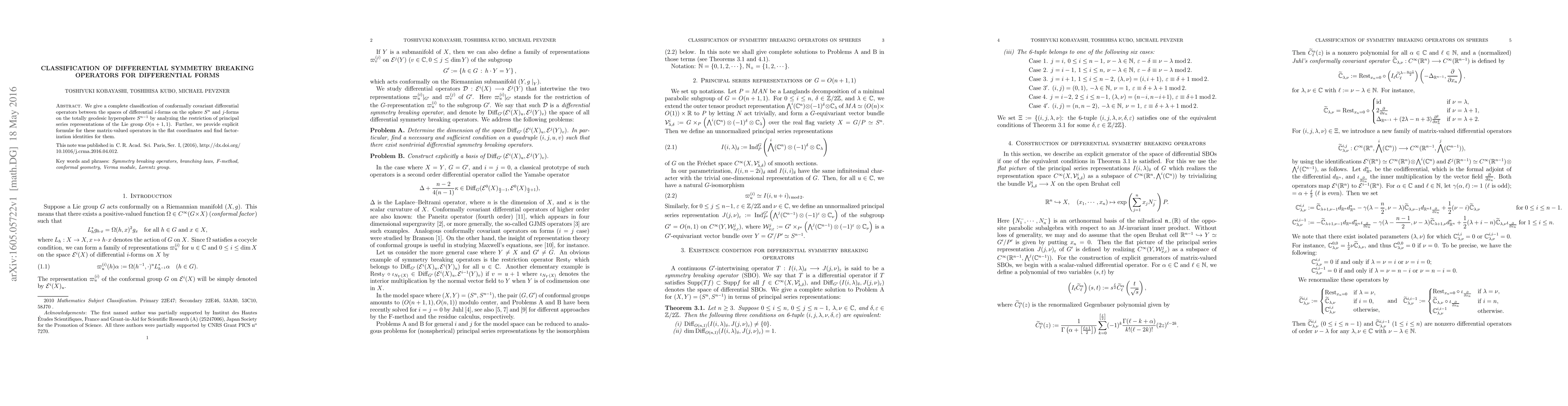 This paper classifies conformally covariant differential operators between differential forms on the sphere $S^n$ and $S^{n-1}$, using representations of the Lie group $O(n+1,1)$, and provides explicit formulas and factorization identities for these operators.