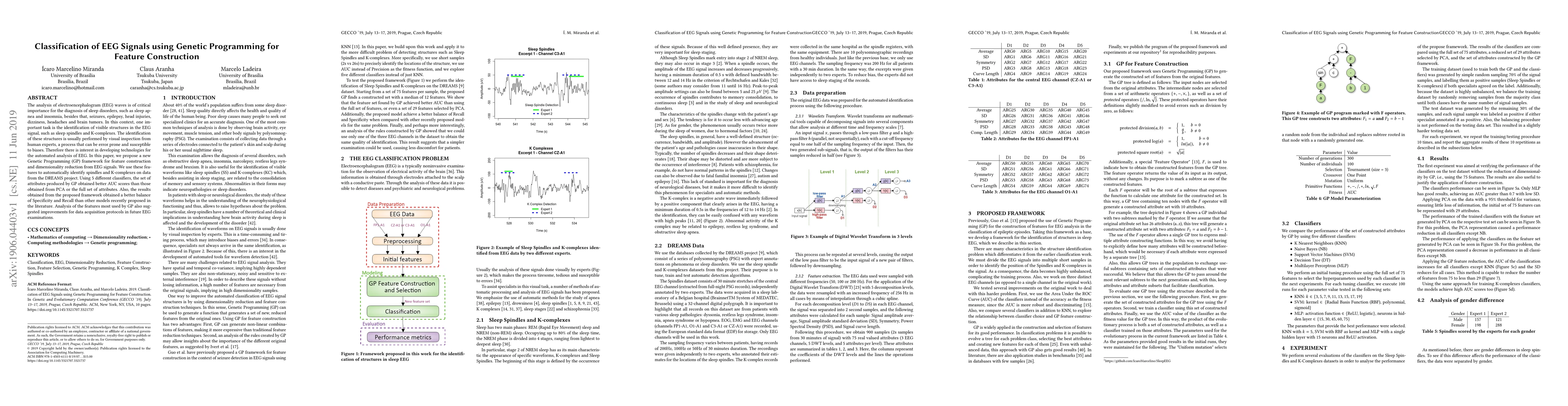 A new Genetic Programming framework is proposed for automatically identifying sleep spindles and K-complexes in EEG signals, outperforming traditional methods in terms of accuracy and balance.