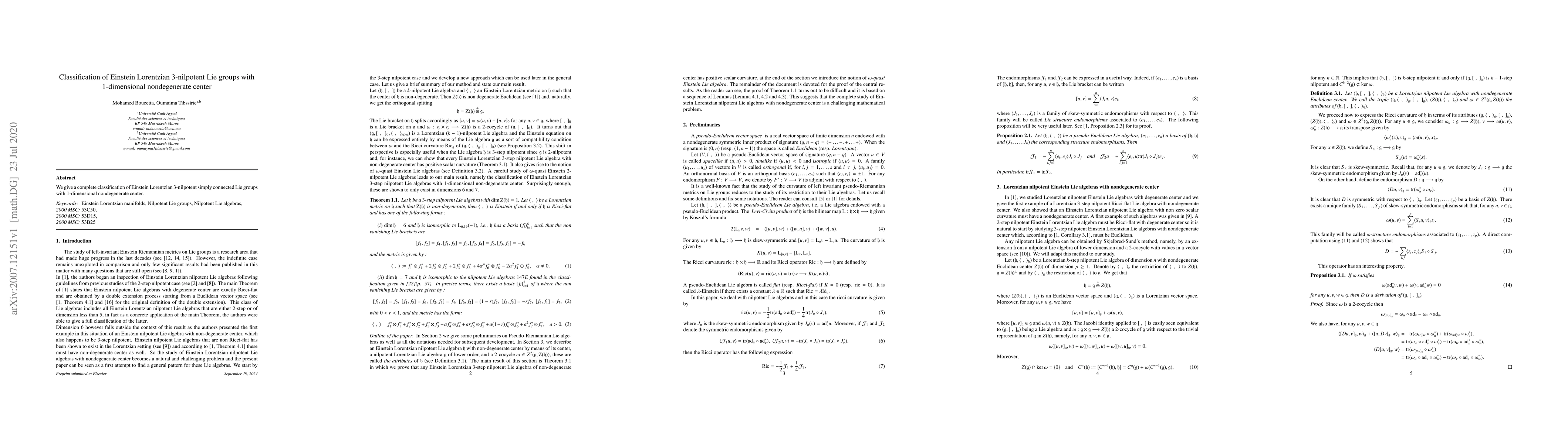 Summary: This paper provides a thorough classification of Einstein Lorentzian 3-nilpotent Lie groups that are simply connected and have a 1-dimensional nondegenerate center. It delineates all possible structures and characteristics of these groups.