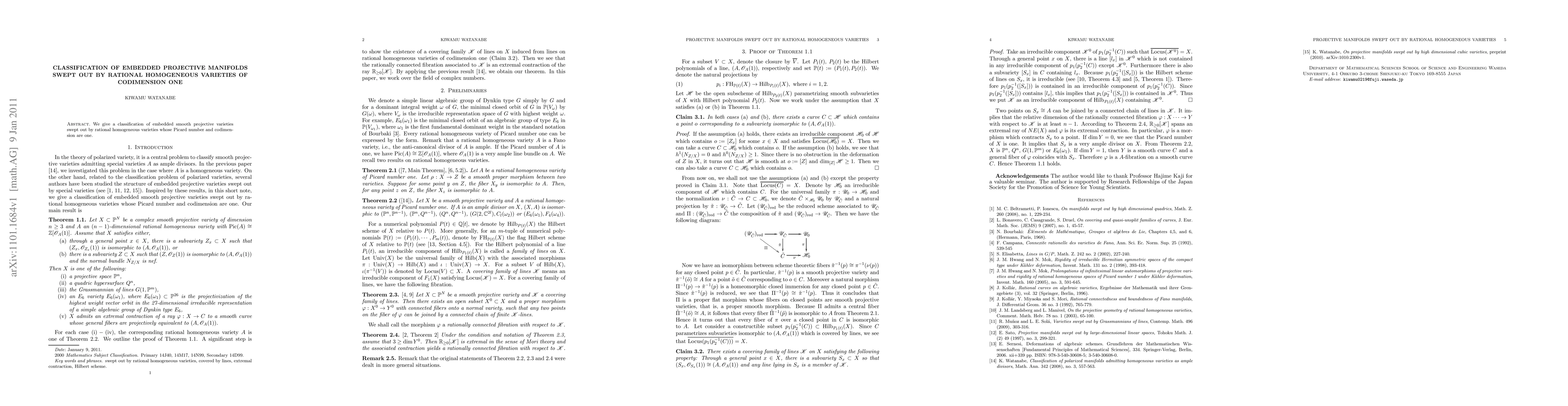 Summary: This paper classifies embedded smooth projective varieties generated by rational homogeneous varieties of codimension one, focusing on those with a Picard number of one. The study provides a comprehensive categorization of such geometric structures.