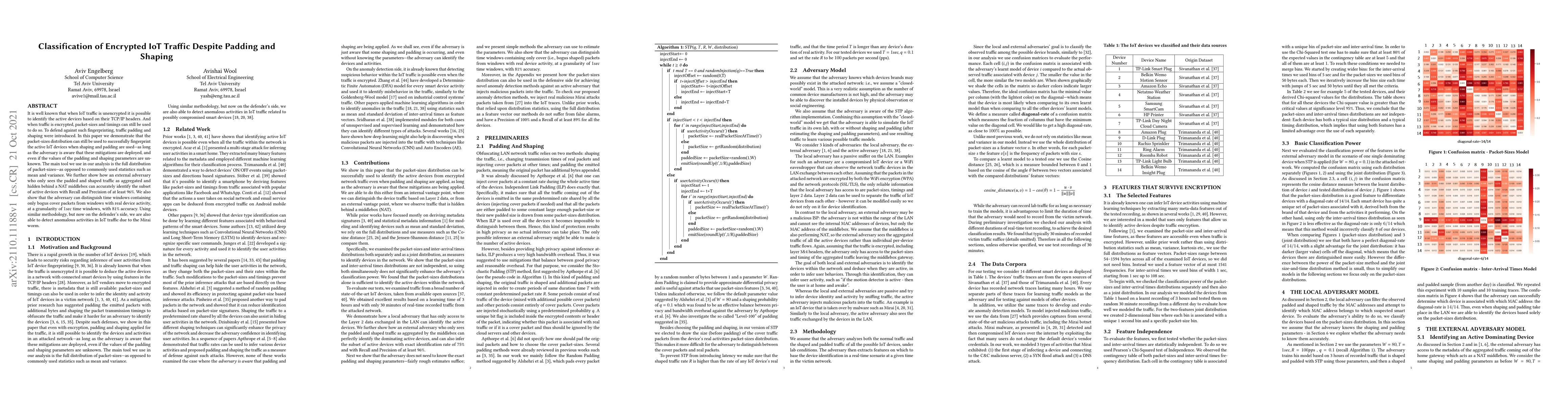 It is well known that when IoT traffic is unencrypted it is possible to identify the active devices based on their TCP/IP headers. And when traffic is encrypted, packet-sizes and timings can still be used to do so. To defend against such fingerprinting, traffic padding and shaping were introduced. In this paper we demonstrate that the packet-sizes distribution can still be used to successfully fingerprint the active IoT devices when shaping and padding are used, as long as the adversary is aware that these mitigations are deployed, and even if the values of the padding and shaping parameters are unknown. The main tool we use in our analysis is the full distribution of packet-sizes, as opposed to commonly used statistics such as mean and variance. We further show how an external adversary who only sees the padded and shaped traffic as aggregated and hidden behind a NAT middlebox can accurately identify the subset of active devices with Recall and Precision of at least 96%. We also show that the adversary can distinguish time windows containing only bogus cover packets from windows with real device activity, at a granularity of $1sec$ time windows, with 81% accuracy. Using similar methodology, but now on the defender's side, we are also able to detect anomalous activities in IoT traffic due to the Mirai worm.