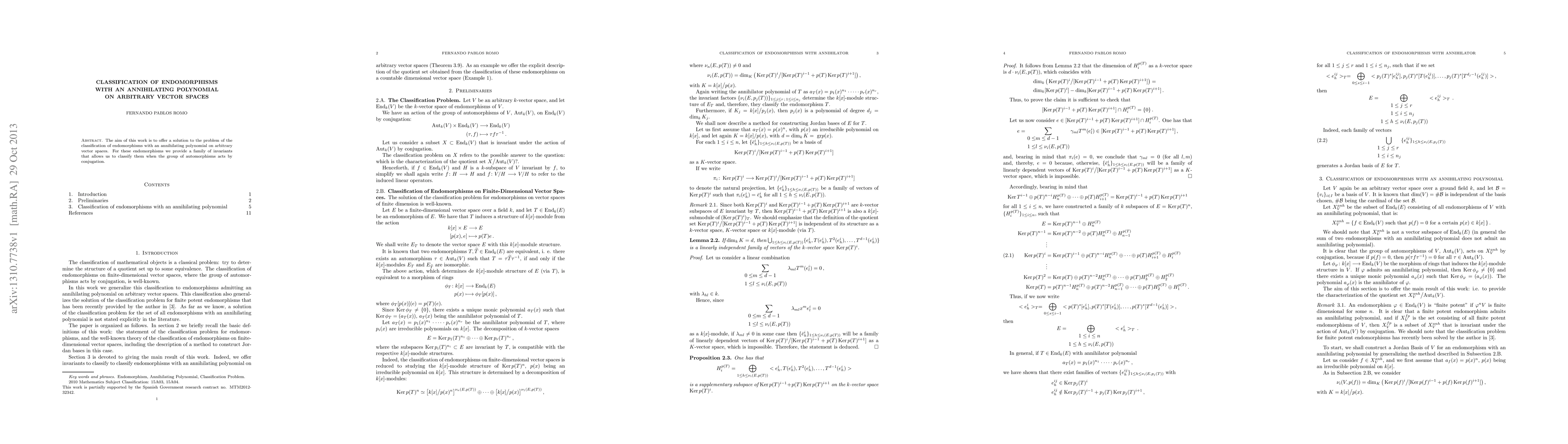 This paper classifies endomorphisms of arbitrary vector spaces that possess an annihilating polynomial, providing a set of invariants for their classification under the group of automorphisms acting by conjugation.