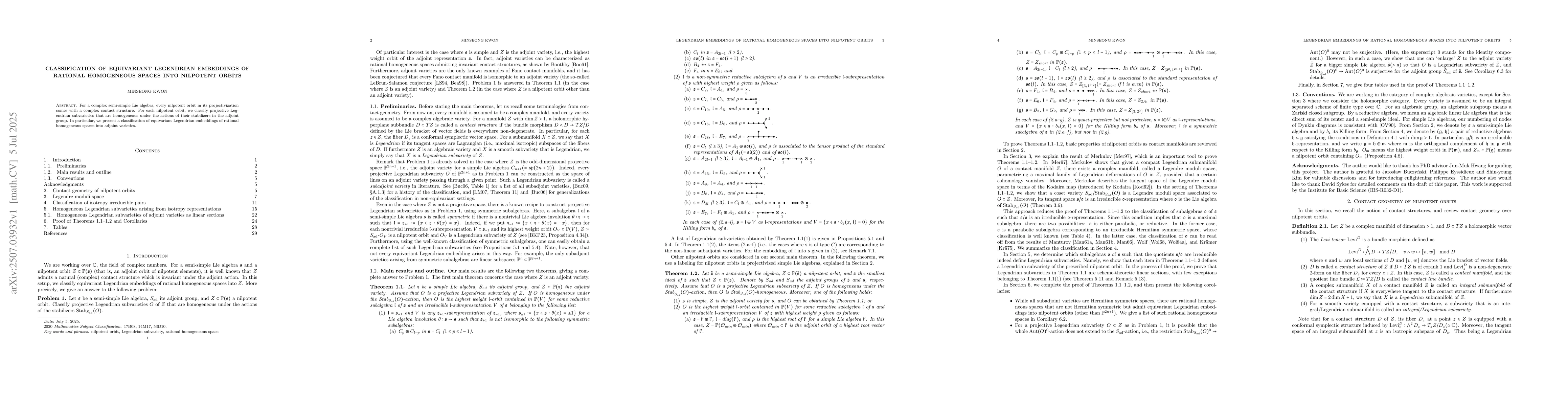 The paper introduces a systematic method for classifying equivariant Legendrian embeddings, leveraging the properties of nilpotent orbits and adjoint varieties.