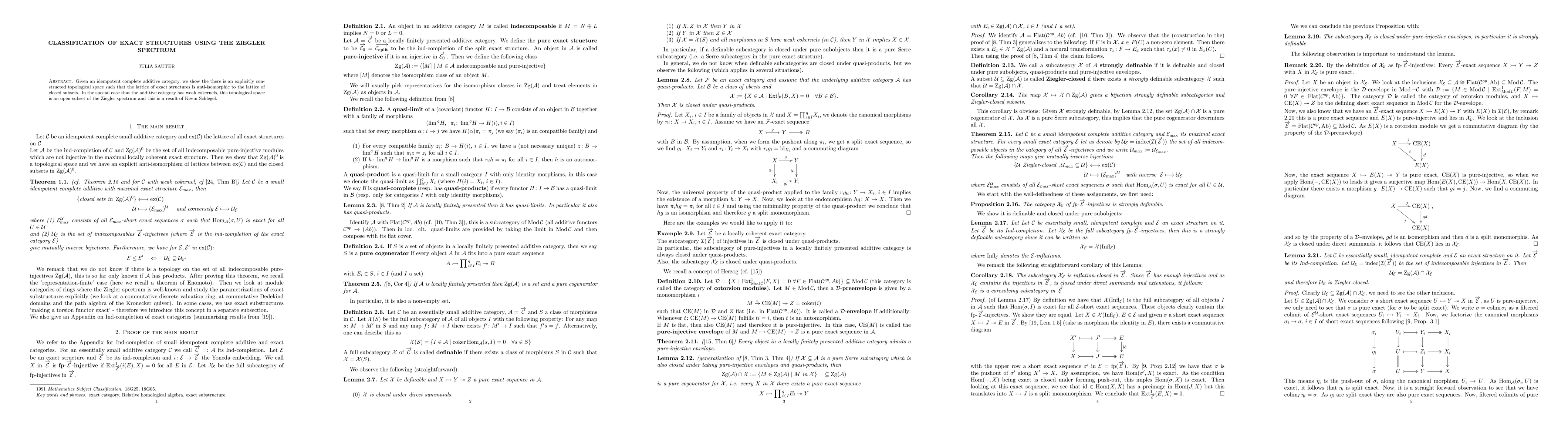 The paper introduces a topological approach to classifying exact structures via the Ziegler spectrum, extending previous work on the relationship between exact categories and topological spaces.