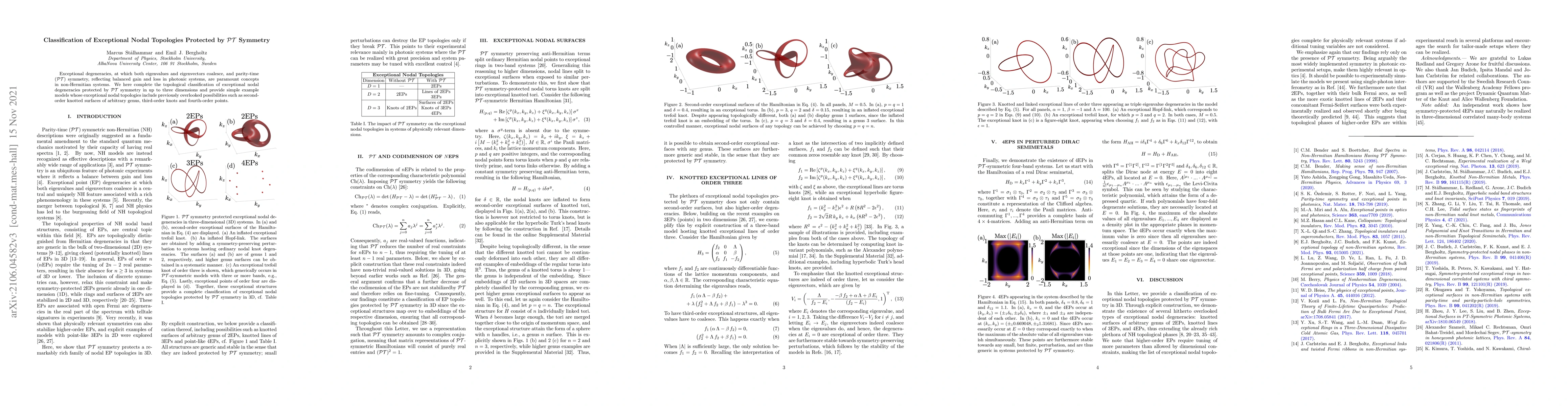 Exceptional degeneracies, at which both eigenvalues and eigenvectors coalesce, and parity-time ($\mathcal{PT}$) symmetry, reflecting balanced gain and loss in photonic systems, are paramount concepts in non-Hermitian systems. We here complete the topological classification of exceptional nodal degeneracies protected by $\mathcal{PT}$ symmetry in up to three dimensions and provide simple example models whose exceptional nodal topologies include previously overlooked possibilities such as second-order knotted surfaces of arbitrary genus, third-order knots and fourth-order points.