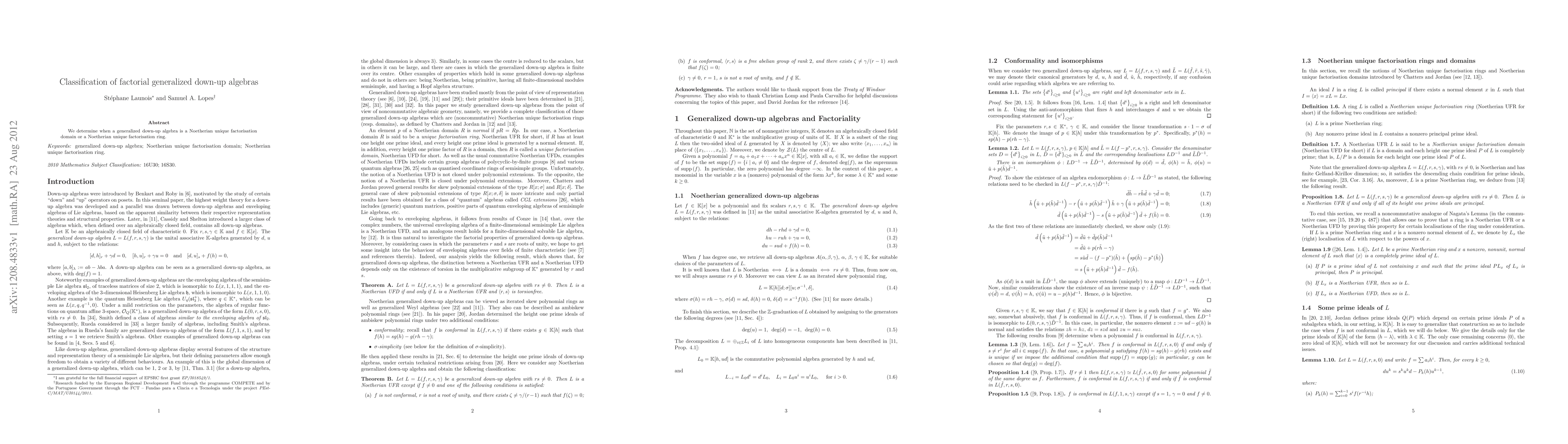 Summary: This paper classifies generalized down-up algebras to determine their status as Noetherian unique factorisation domains or rings, providing conditions under which these properties hold.