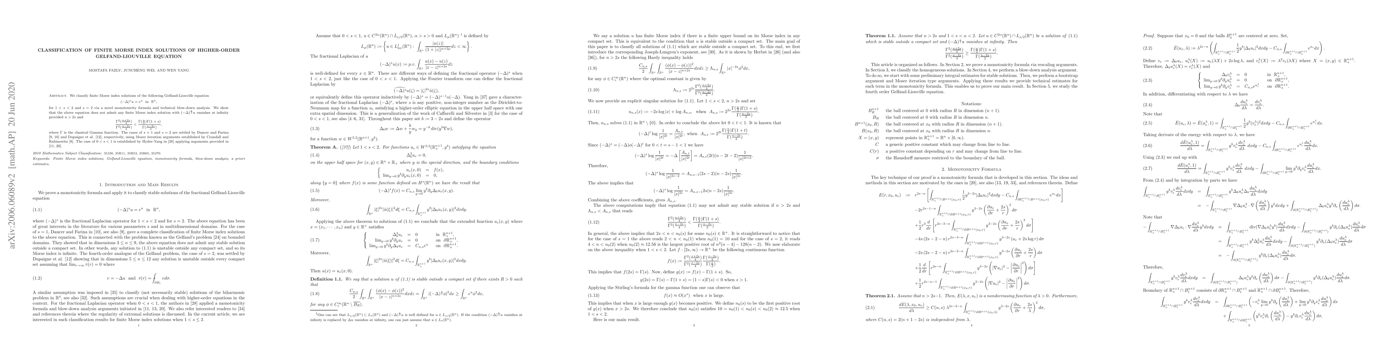 We classify finite Morse index solutions of the following Gelfand-Liouville