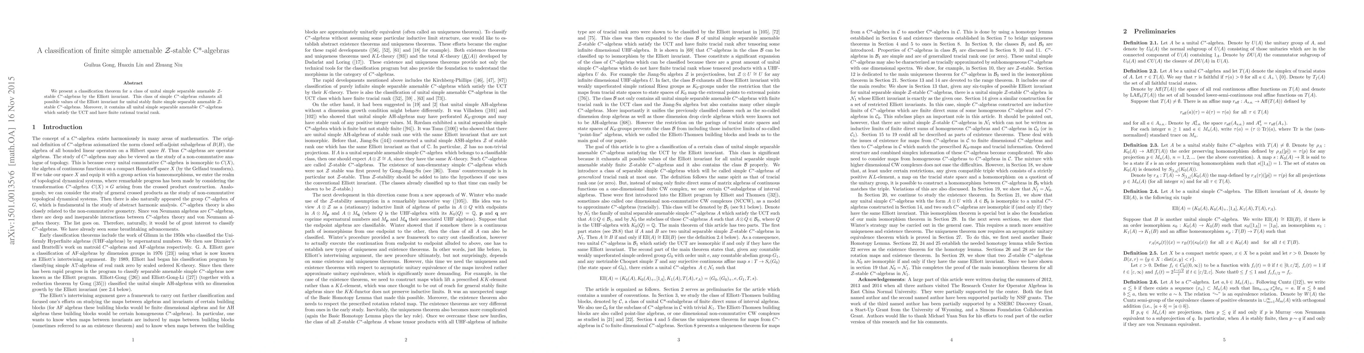 Summary: The paper establishes a classification for unital simple separable amenable ${\cal Z}$-stable $C^*$-algebras using the Elliott invariant, covering all possibilities and including algebras satisfying the UCT and having finite rational tracial rank.