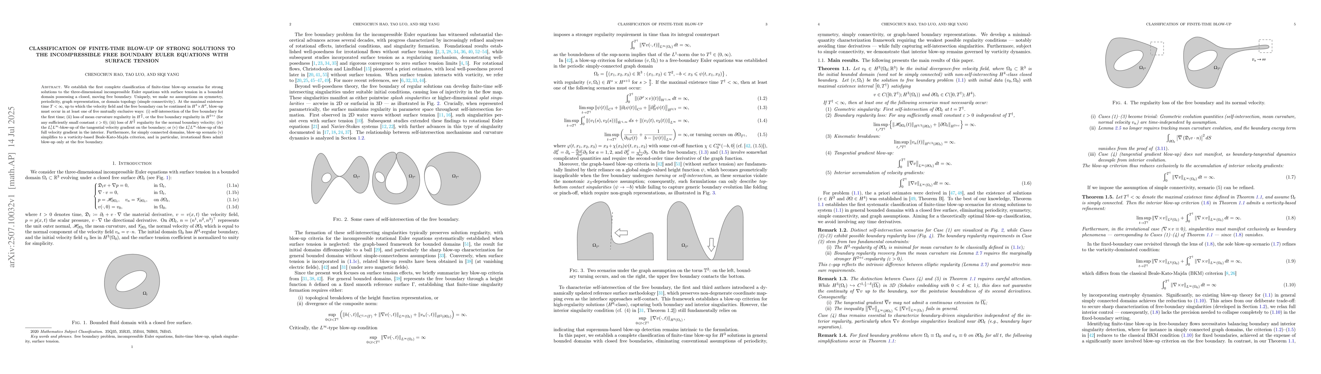 We establish the first complete classification of finite-time blow-up scenarios for strong solutions to the three-dimensional incompressible Euler equations with surface tension in a bounded domain possessing a closed, moving free boundary. Uniquely, we make \textit{no} assumptions on symmetry, periodicity, graph representation, or domain topology (simple connectivity). At the maximal existence time $T<\infty$, up to which the velocity field and the free boundary can be continued in $H^3\times H^4$, blow-up must occur in at least one of five mutually exclusive ways: (i) self-intersection of the free boundary for the first time; (ii) loss of mean curvature regularity in $H^{\frac{3}{2}}$, or the free boundary regularity in $H^{2+\varepsilon}$ (for any sufficiently small constant $\varepsilon>0$); (iii) loss of $H^{\frac{5}{2}}$ regularity for the normal boundary velocity; (iv) the $L^1_tL^\infty$-blow-up of the tangential velocity gradient on the boundary; or (v) the $L^1_tL^\infty$-blow-up of the full velocity gradient in the interior. Furthermore, for simply connected domains, blow-up scenario (v) simplifies to a vorticity-based Beale-Kato-Majda criterion, and in particular, irrotational flows admit blow-up only at the free boundary.