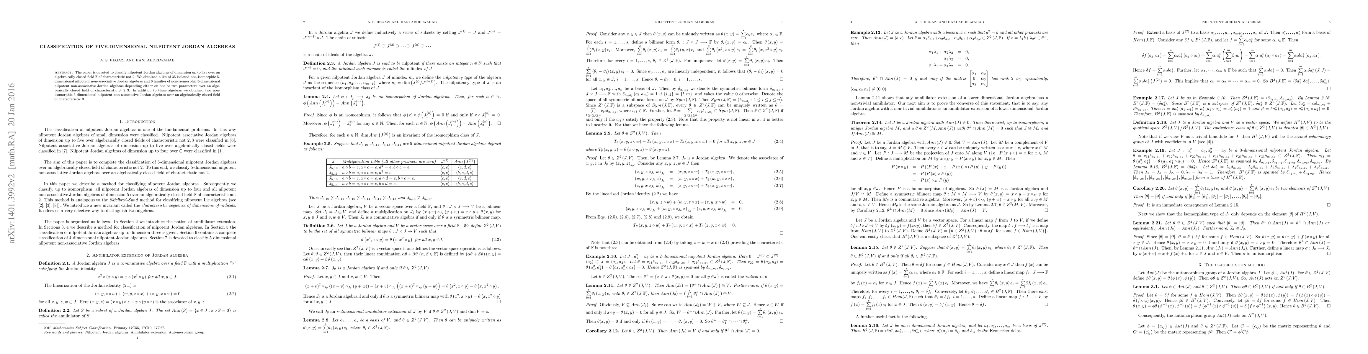 This paper classifies 5-dimensional nilpotent Jordan algebras over an algebraically closed field of characteristic not 2, identifying 35 isolated algebras and 6 families with one or two parameters, and two additional algebras for characteristic 3.