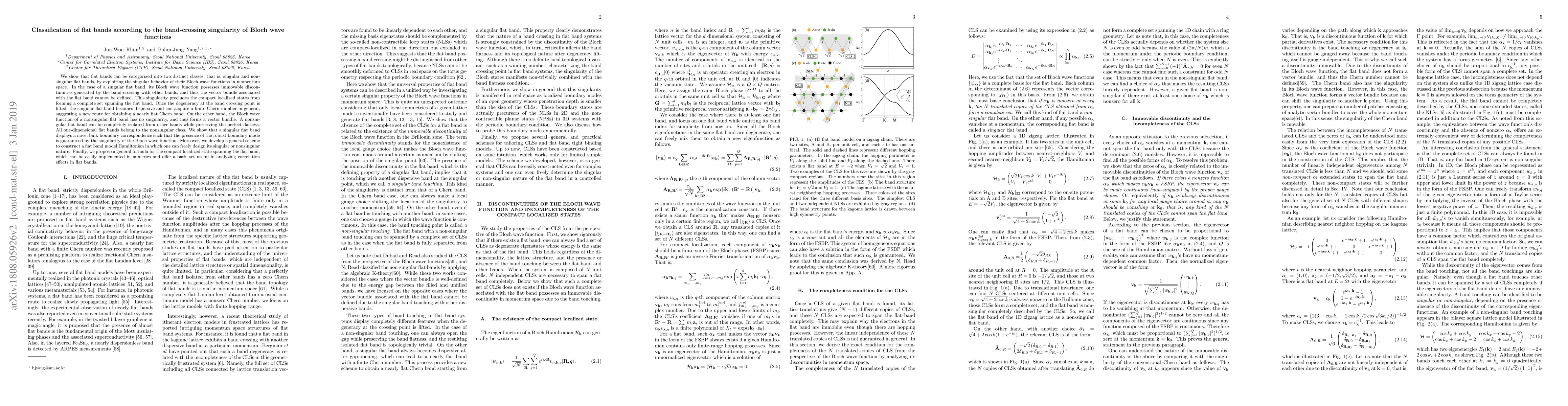 The paper classifies flat bands into singular and nonsingular types based on the behavior of their Bloch wave functions, revealing that singular flat bands have immovable discontinuities, while nonsingular ones have no such singularities. Singular flat bands can transition to dispersive states with finite Chern numbers, whereas nonsingular ones maintain perfect flatness and isolation.