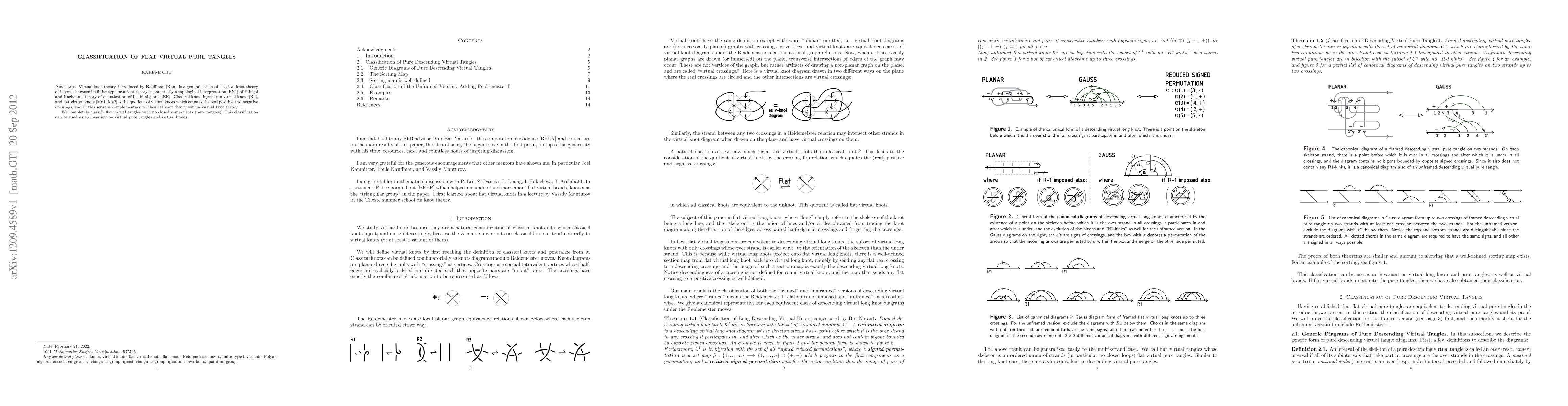 Virtual knot theory, introduced by Kauffman, is a generalization of classical knot theory of interest because its finite-type invariant theory is potentially a topological interpretation of Etingof and Kazhdan's theory of quantization of Lie bi-algebras. Classical knots inject into virtual knots, and flat virtual knots is the quotient of virtual knots which equates the real positive and negative crossings, and in this sense is complementary to classical knot theory within virtual knot theory. We completely classify flat virtual tangles with no closed components (pure tangles). This classification can be used as an invariant on virtual pure tangles and virtual braids.